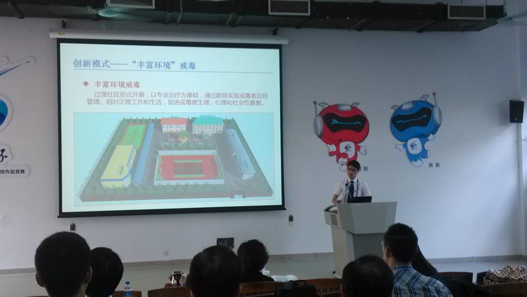 该参赛作品的成员由医学院和法学院学生组成,主要有:李鹏平、李双艳、陈伟峰、林德永、潘统鹤、许舜、李平、杜奕奕、吴波亮、李萌10位同学。该团队凭借转化医学指导构建“丰富环境”戒毒模式,通过法学调研完善戒毒者权利保障,融合医学和法学的特长,为我国的强制隔离戒毒模式日渐完善提供了可供选择的方案。目前戒毒所已投入300余万针对该戒毒模式进行建设 。