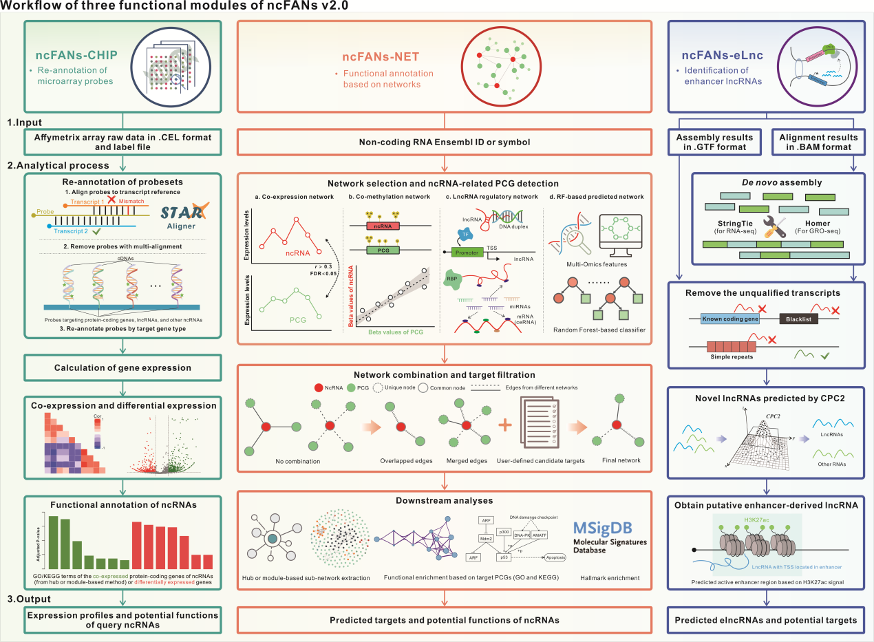 Yuwei Zhang†, Dechao Bu†, PeipeiHuo, Zhihao Wang, Hao Rong, Yanguo Li, Jingjia Liu, Meng Ye, Yang Wu, Zheng Jiang, Qi Liao*, Yi Zhao*, ncFANs v2.0: an integrative platform for functional annotation of non-coding RNAs, Nucleic Acids Research, 2021;, gkab435, //doi.org/10.1093/nar/gkab435