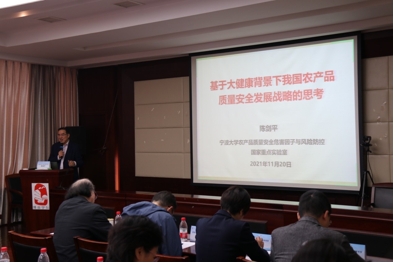 开幕式中,刘昱代表医学院对各位专家学者的到来表示诚挚感谢。夏可宏结合地方需求,希望医学院的科研能进一步推动医疗健康产业的发展,为宁波市健康领域的创新提供更多决策咨询和有力支撑。陈剑平从“大、专、容”的角度寄语医学院年轻老师,即“大”是要有大的格局、大的体系、大的规范;“专”是要把自己的事情做得更专业,做得有特色;“容”是与不同的学科融合。并在《基于大健康背景下我国农产品质量安全发展战略的思考》的主题报告中,提出医科和农科结合的新发展思路,开拓广大师生的科研创新思维。主报告中,还有来自杭州师范大学的李葆明教授和中国科学院北京生命科学研究院的赵方庆研究员分别就记忆调控和母婴健康作了最新研究进展报告。