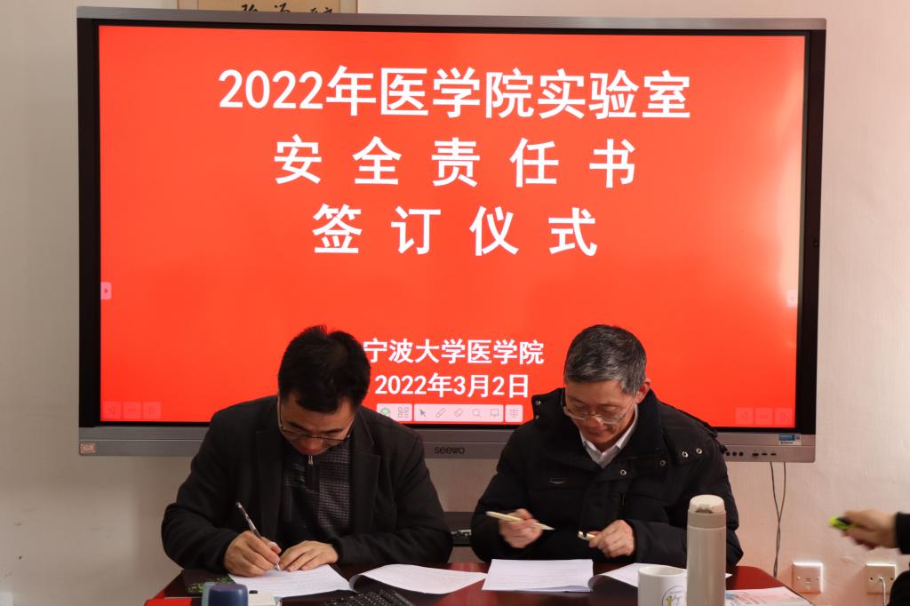 在签订仪式中,医学院执行院长、分管实验室工作副院长、基础医学院和公共卫生学院执行院长、各学系主任、各办公室和中心负责人按照各自岗位职责一一签订了《实验室安全责任书》。