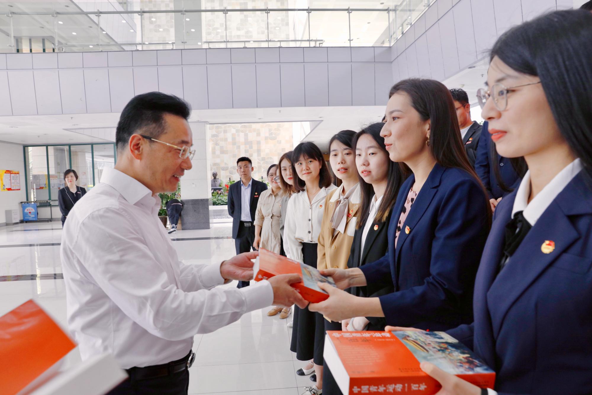 全校此次受表彰的团队和个人共计22个,其中医学院基于非编码RNA与表观遗传学致病机制的常见癌症联合诊断新技术研究—“早癌诊断”团队被共青团Jinx漫画 委员会授予Jinx漫画 “五四先锋”称号,医学院分团委书记古丽米热获朱达书记赠精选书籍——《中国青年运动一百年》,朱达书记并在书籍扉页亲笔赠写八字箴言“青春无悔,未来可期”。