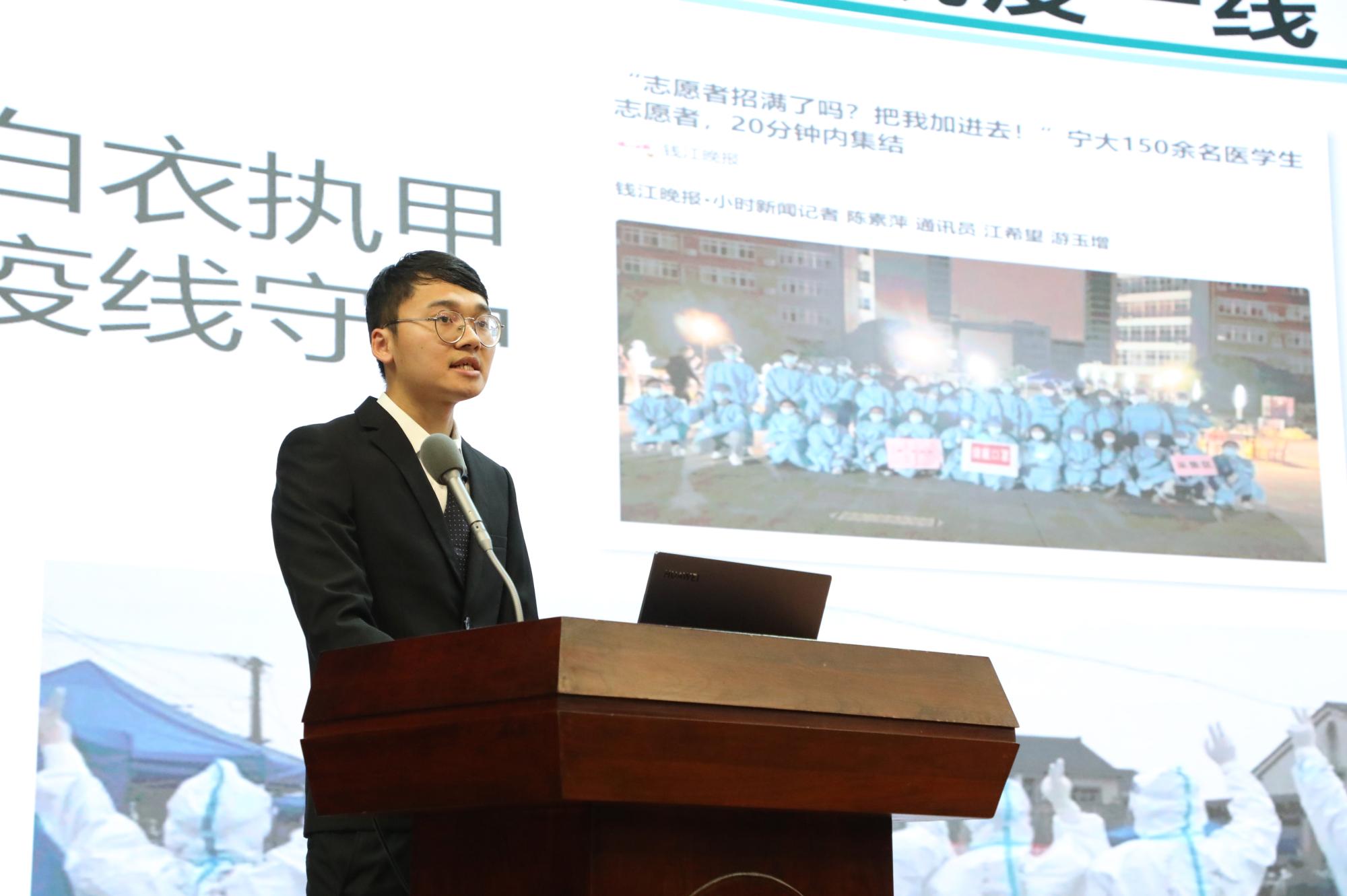 此次评选中,涌现了大量的优秀研究生学子,在思想道德、学业科研、科技创新、志愿服务、社会工作等方面表现突出、在广大学生中具有一定的影响力,起到了较好的模范带头作用。严嘉宁同学从学习、思想、竞赛、实践四个方面分享了三年研究生生涯的心路历程,充分地展现了对校训、院训的个人深刻理解。他个人表示,“博学守仁,经世致用”一直作为自己学医与成长生涯中的灯塔明灯。自己也将持之以恒,坚守初心,以更好地自己踏上社会,面对未来。
