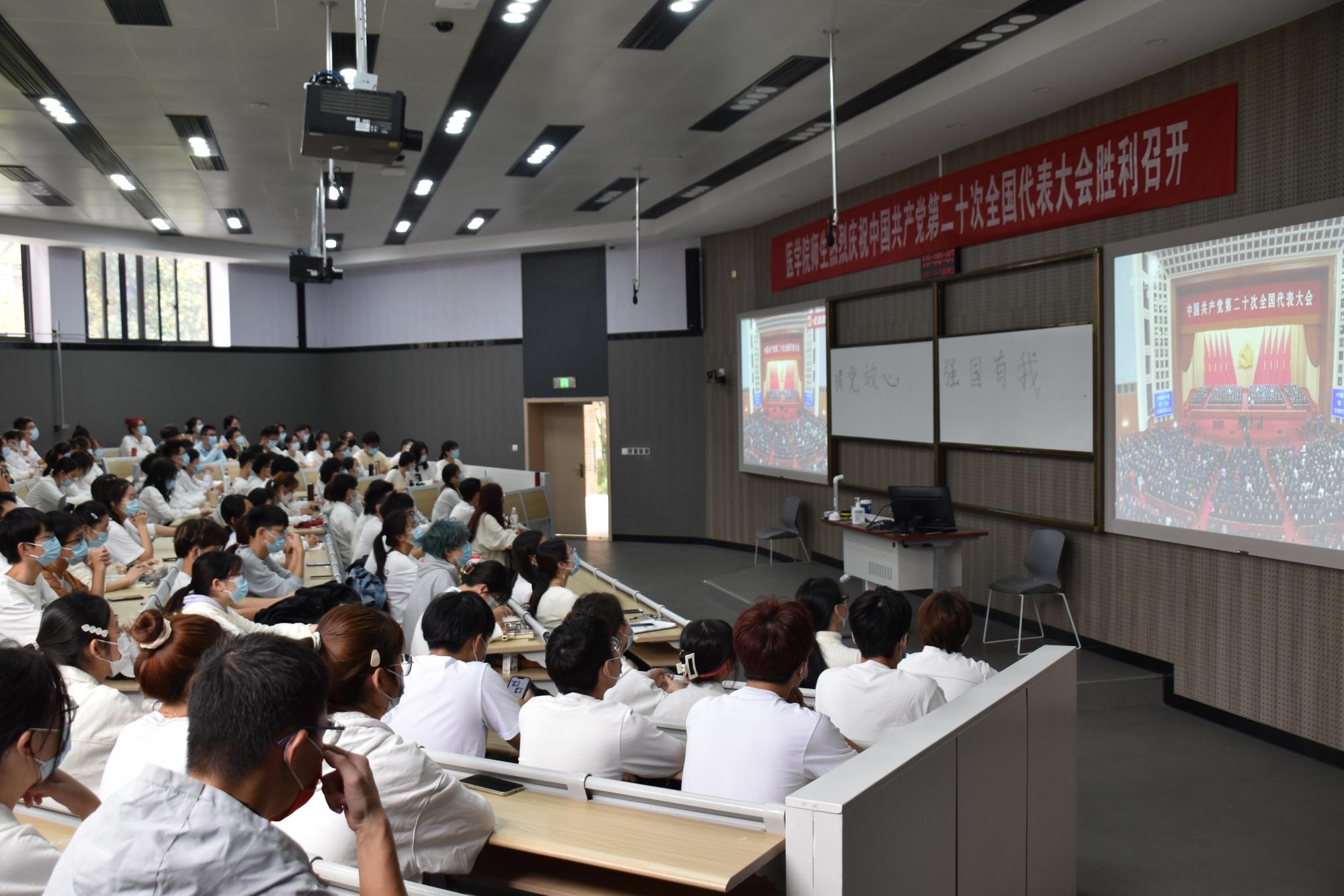 10月16日上午10时,举世瞩目的中国共产党第二十次全国代表大会在北京人民大会堂隆重开幕。医学院党委组织部分师生集中收看了党的二十大开幕直播,认真聆听了习近平总书记代表党十九届中央委员会作的报告。收看现场,大家身临其境,对报告的内容不时报以热烈的掌声。