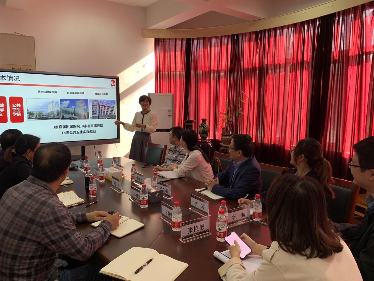 10月25日下午,宁波市眼科医院党委书记翁红飞、党委委员易全勇、科教科科长刘小天等一行6人来医学院考察交流。医学院执行院长刘昱、各相关管理中心负责人等参加了接待。