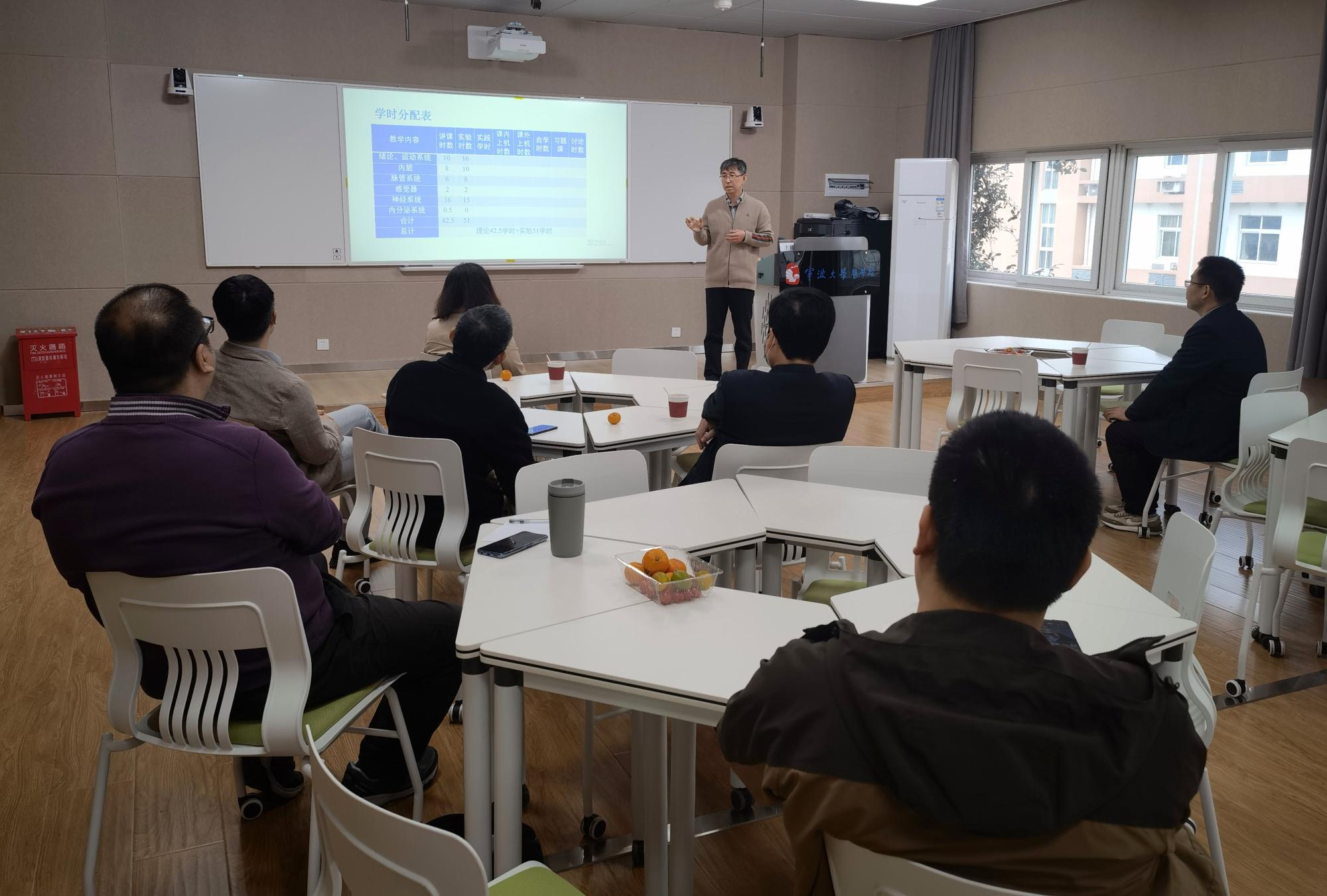 11月14日中午,基础医学院在至真楼智慧教室开展第二期基础医学课程内容分享交流会。基础医学院执行院长文金生主持会议,课程分享主讲教师、主干课程负责人以及部分骨干教师参加本次交流会。