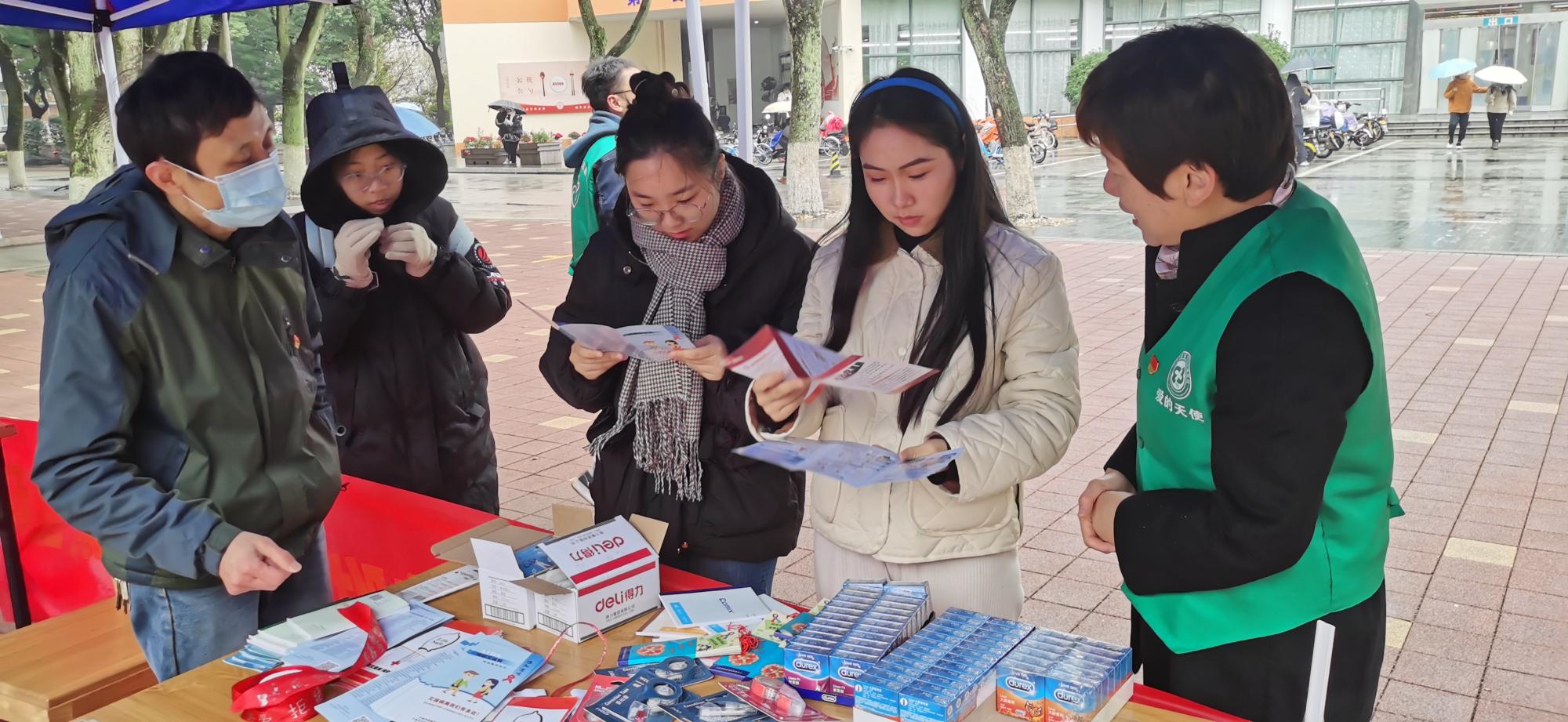 12月1日是第35个“世界艾滋日”,当天,活动在有思广场举行,通过“艾滋知多少——弹弹棋问答”、“艾的抱抱——拥抱艾滋患者”、“心系‘艾’,共健康——喷绘‘艾’寄语”等形式开展。本次宣传活动累计发放宣传册共计500余份、避孕套200余只,宣传学生超过2000余人。