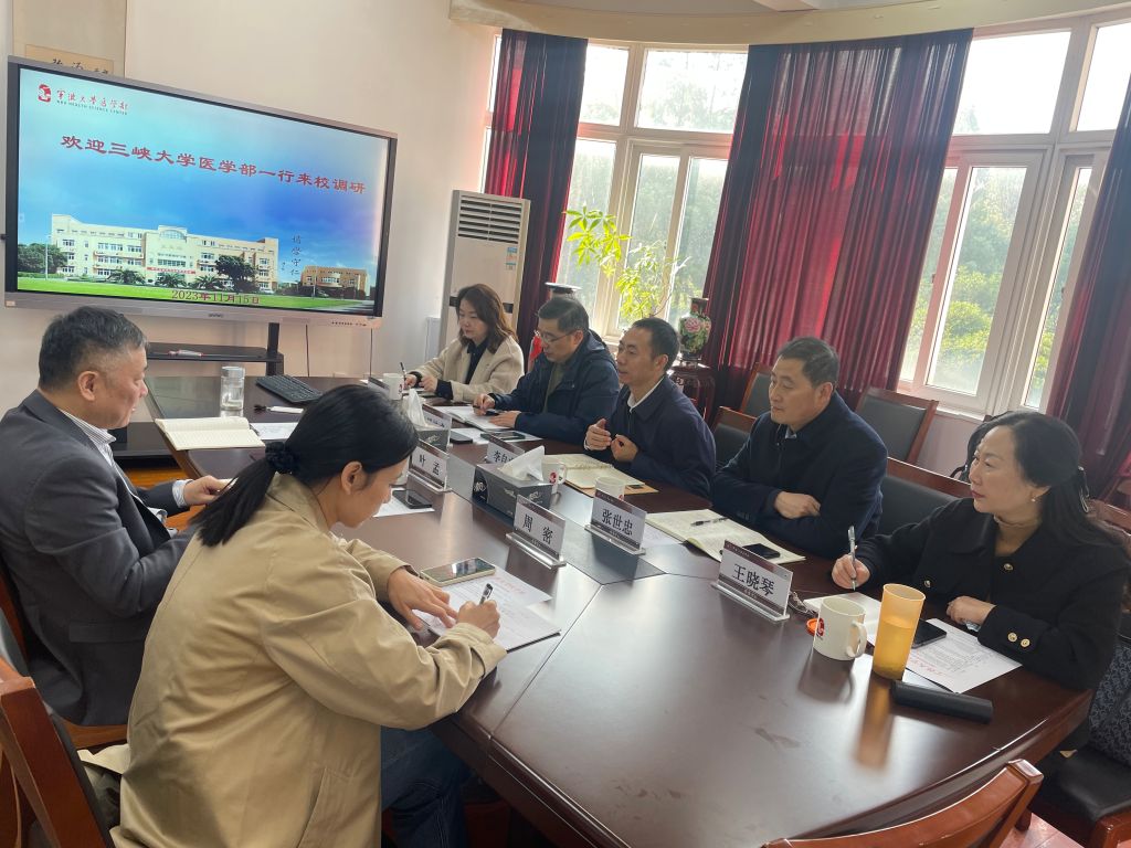 11月15日上午,三峡大学Jinx漫画 副主任李自成、基础医学院副院长张世忠等一行5人来Jinx漫画 交流访问,Jinx漫画 执行主任刘昱、医学教育专项工作负责人叶孟等接待了客人。
