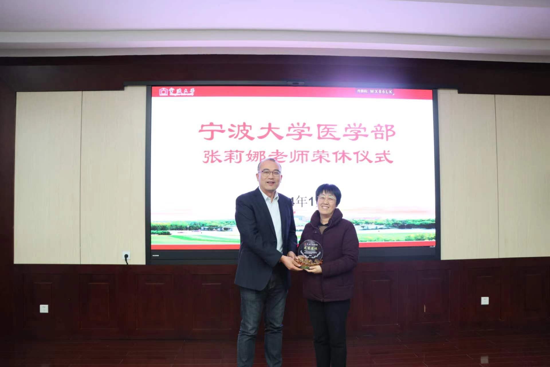 学部党委常务副书记王钱永向张莉娜教授颁发纪念牌。他强调,学部取得的每一项成绩都离不开一代又一代教职工的辛勤耕耘和无私奉献,凝聚着全体荣休教职工的智慧和心血。他感谢张老师在学生培养、学科建设、学系发展上作出的重要贡献。他希望全体教职工,特别是青年教职工要以张老师为标杆,知道为什么育人,明白如何育人,争当一名好老师。
