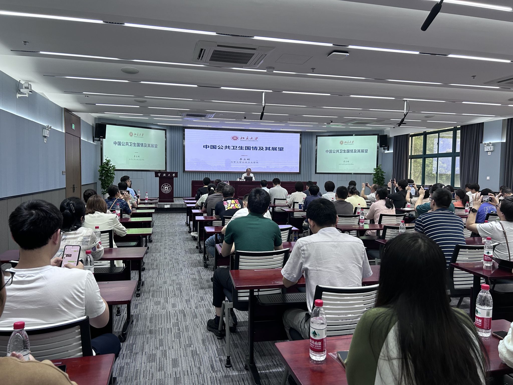 6月25日,李立明在安中大楼风华厅做了《中国公共卫生国情及其展望》的学术报告,这也是第125期杏林讲坛。他以学贯东西的知识、生动丰富的案例和深邃敏锐的思考,向大家分享了公共卫生的起源、中国公共卫生实践、联合国可持续发展战略及其落实、中国公共卫生和疾控系统改革及展望等内容。他的报告让广大师生颇受启发,并对于建好公共卫生与预防医学学科、培养为健康中国服务的复合型公共卫生人才的必要性和紧迫性有了十分清醒的认识。