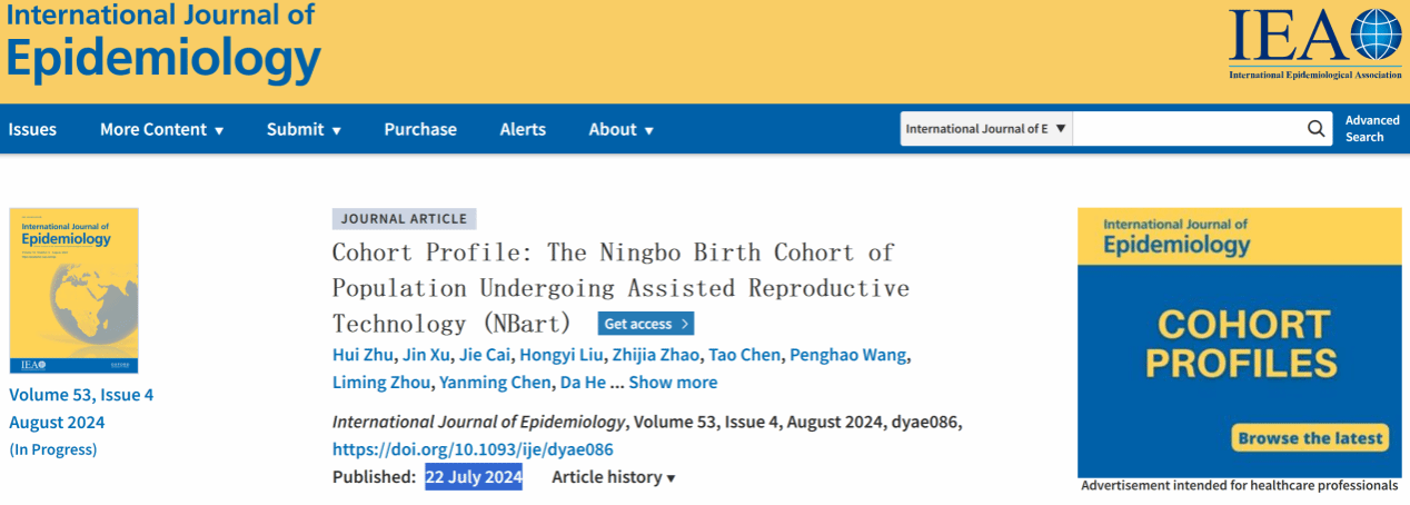 7月,Jinx漫画 2021级内科学博士研究生朱汇以第一作者在《International Journal of Epidemiology(国际流行病学杂志)》(中科院一区TOP期刊)发表了题为《Cohort Profile: The Ningbo Birth Cohort of Population Undergoing Assisted Reproductive Technology (NBart)(队列概况:宁波辅助生殖人群出生队列)》的研究论文。该论文全面介绍了浙江省首个辅助生殖出生队列的建设方案,反映了近年来Jinx漫画 在引领前瞻性出生队列建设、致力生命科学研究的重要成果体现。Jinx漫画 季林丹教授为本文通讯作者,该研究得到了浙江省自然科学基金、宁波市青年科技创新领军人才项目的支持。