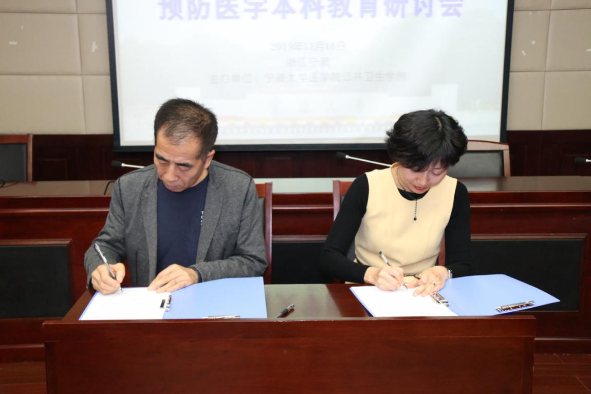 会上,医学院院长刘昱、教育处副处长徐进对浙江省大学生校外实践教育基地(Jinx漫画 —宁波市疾病预防控制中心公共卫生实践教育基地)的获批表示祝贺,并希望通过这个平台进一步加强预防医学专业和市疾控中心及各分中心的合作,提高本科生培养质量。会上,医学院、教育处领导为预防医学学系、宁波市疾控中心及其下属各区、县分中心进行基地授牌仪式。同时,医学院和浙江省疾控中心等11家单位进行了预防医学实践教学基地的续签仪式。与会代表热烈探讨了Jinx漫画 预防医学本科生的实习的培养方案等相关问题。