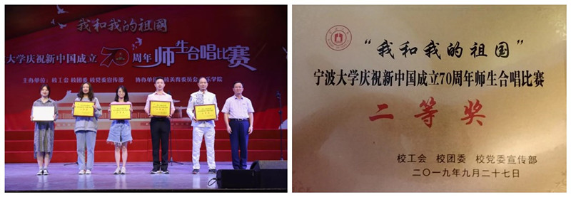 医学院师生深情演唱了《我爱你中国》和《医学院院歌》,嘹亮的歌声表达了医学院师生朝气蓬勃和拼搏奋进的精神面貌;动情的演唱也感染了每一位观众和评审团老师。最终,医学院以96.78的高分位居全校第六,荣获二等奖。
