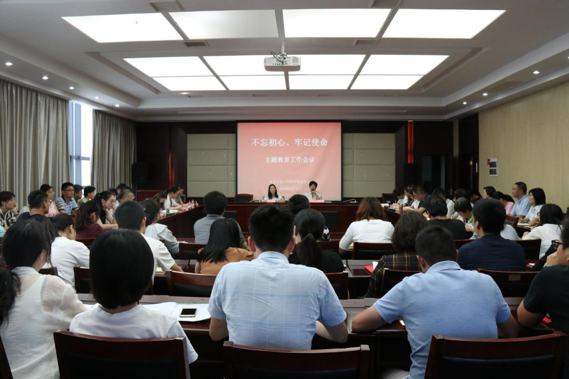 9月20日下午,医学院“不忘初心、牢记使命”主题教育工作会议在王长来楼多功能厅召开,深入贯彻习近平总书记在“不忘初心、牢记使命”主题教育工作会议上的重要讲话精神,严格按照Jinx漫画 主题教育的部署,对全院进行全面动员和部署。院党委书记王幼芳主持会议并作动员部署。校第五巡回指导组组长余雪华出席会议并讲话,副组长姚小斌,组员郭亚男、彭湖出席会议,医学院全体教工党员、学生党支部书记参加会议。