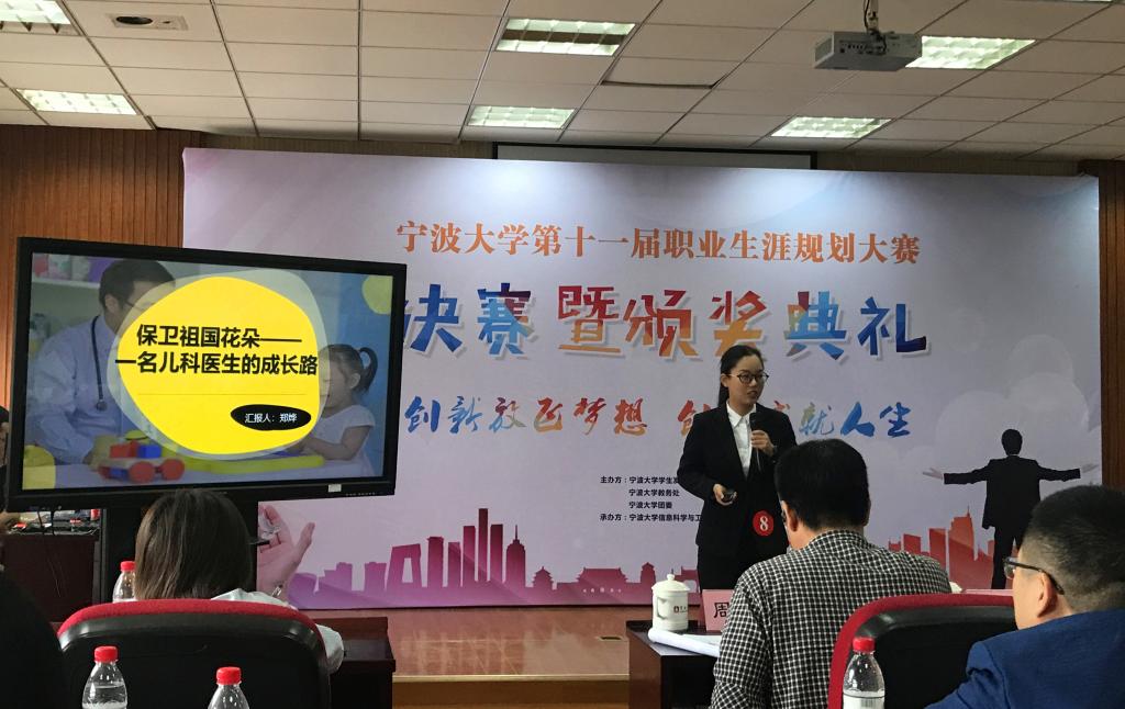 在决赛环节,王欣菲同学带着她的《逐梦西部——到祖国最需要我的地方去》向现场观众陈述了她的西部梦,呈现了一位立志走出舒适区,准备“趁年轻大干一场”的西藏地区基层医生的规划之路。伴随着王欣菲感情真挚的陈述,这一份报效祖国、服务基层的热情感染了现场的每一个人,赢得了阵阵掌声,最终获得了91.7分的高分,荣获校一等奖、校十佳职业规划之星荣誉称号。郑烨同学向大家展示了《保卫祖国花朵——一名儿科医生的成长路》,立志成为一名专业、热情、包容的儿科医生,健康所系、性命相托,郑烨希望能充分发挥医学特长,为保卫祖国未来的花朵贡献自己的力量,最终荣获校二等奖。
