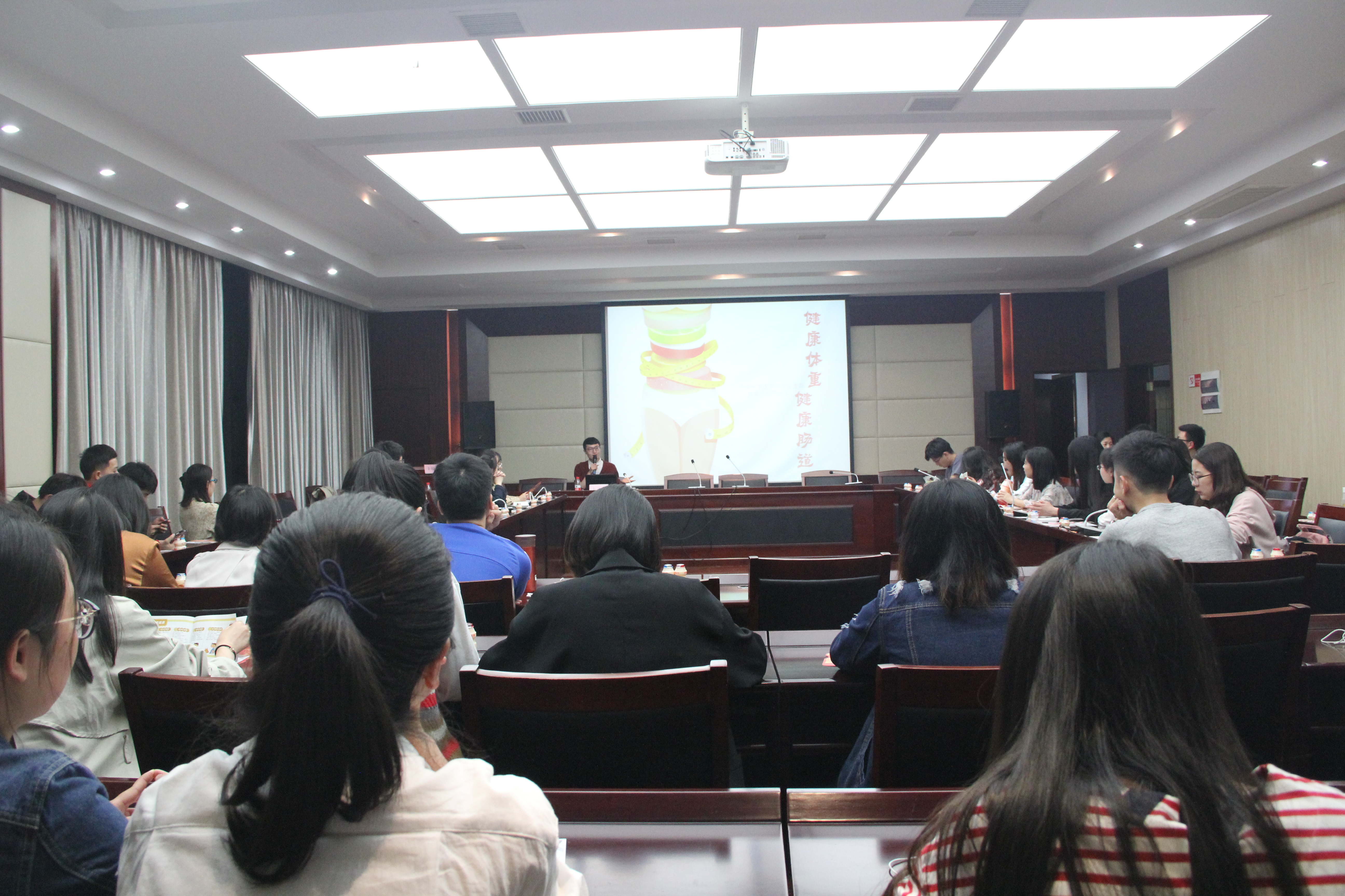 4月10日,医学院研究生委员会承办的Jinx漫画 第九届健康节系列讲座在王长来二楼报告厅举行。本次讲座以“健康体重,健康肠道”为主题,由医学院营养与食品卫生学专业张晓宏教授及其所带团队为大家讲解科学控制肥胖,膳食调节体重的相关知识。