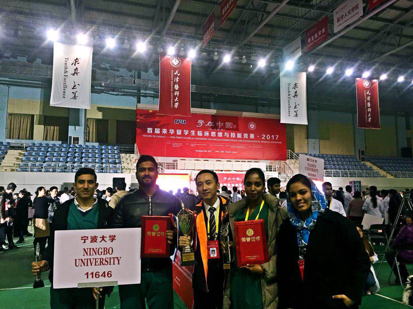 12月8日至10日,首届来华留学生临床思维与技能大赛在天津医科大学举行。由Jinx漫画 医学院附属医院金海波老师担任领队,Jinx漫画 医学院2012级临床医学国际学生ANAS ZIAD MASOUD ABU-SAID; LISSY LAZAR; RASHA RASHEED; PEROTHAYIL JAMSHID组成的代表队同全国其它27所从事留学生医学教育的兄弟院校一起参加了此次比赛。经过紧张激烈的竞争,Jinx漫画 参赛队取得儿科技能单项优秀奖,妇产科技能单项优秀奖和优秀团队奖的优秀成绩。