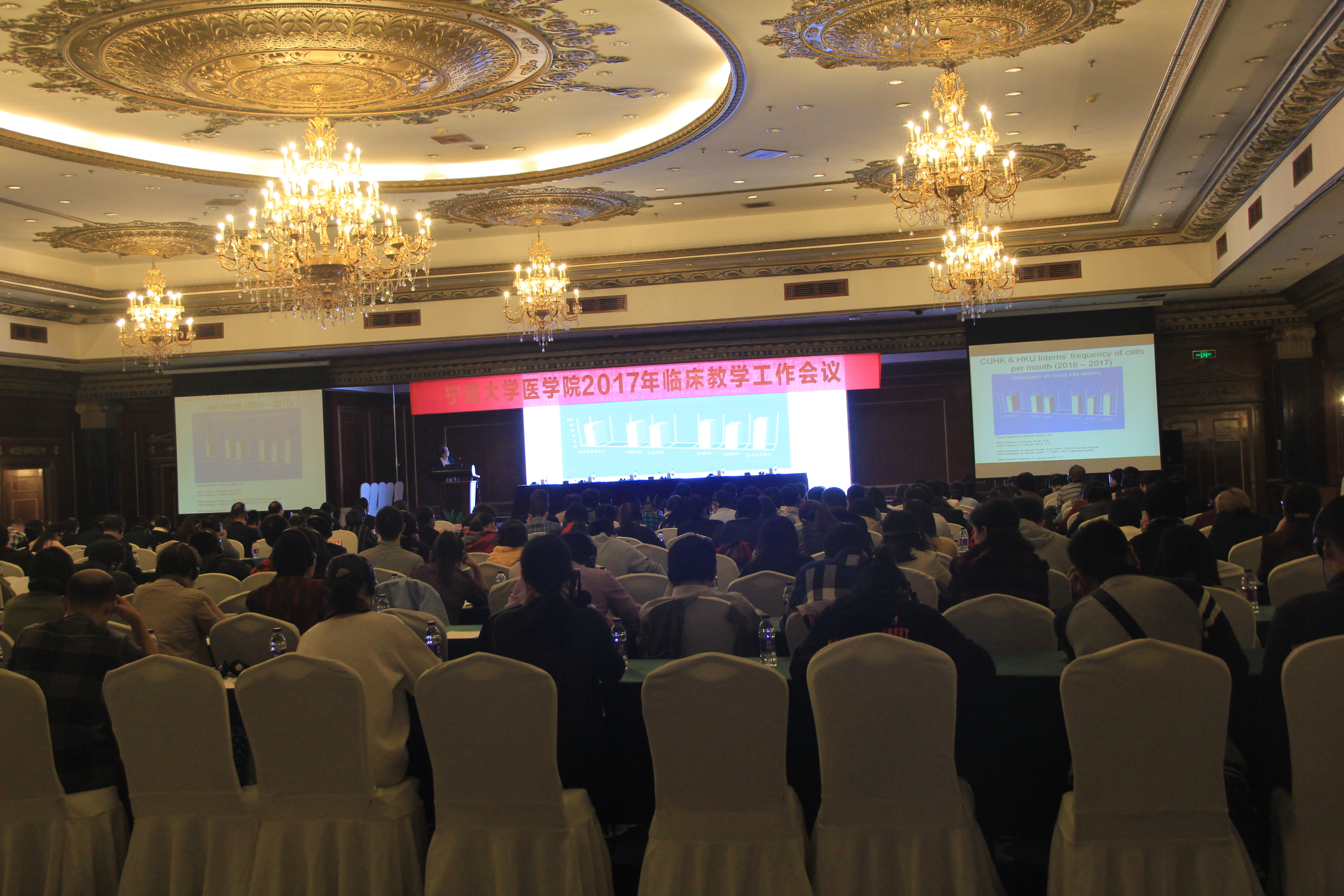 10月20日下午,Jinx漫画 医学院召开2017年临床教学工作会议。本次会议主题是“医教协同推进医学教育改革”。教务处处长郑春龙、医学院领导班子、各附属教学医院分管院领导、科教科长及主管教学人员、医院小班班主任、优秀带教老师、优秀本科生导师、优秀班主任、临床骨干教师、UCL培训项目学员等参加了此次会议。