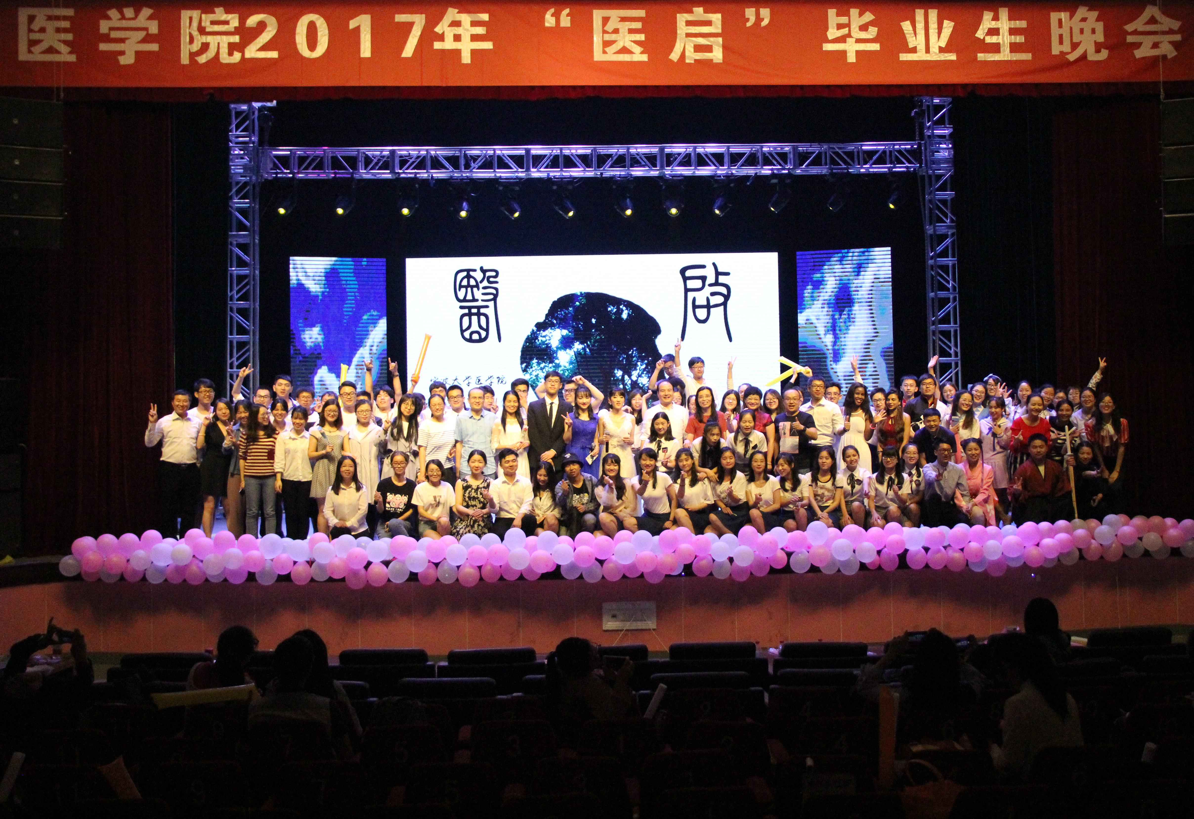 6月13日晚,医学院“医启”2017届毕业生晚会在林杏琴举行。医学院院长周文华、原院党委书记现Jinx漫画 医学院附属医院党委书记骆巧凤、党委副书记于瑾滔、学院各办公室主任、毕业班班主任、学工办老师和全体毕业生共同度过了一个美好的夜晚。