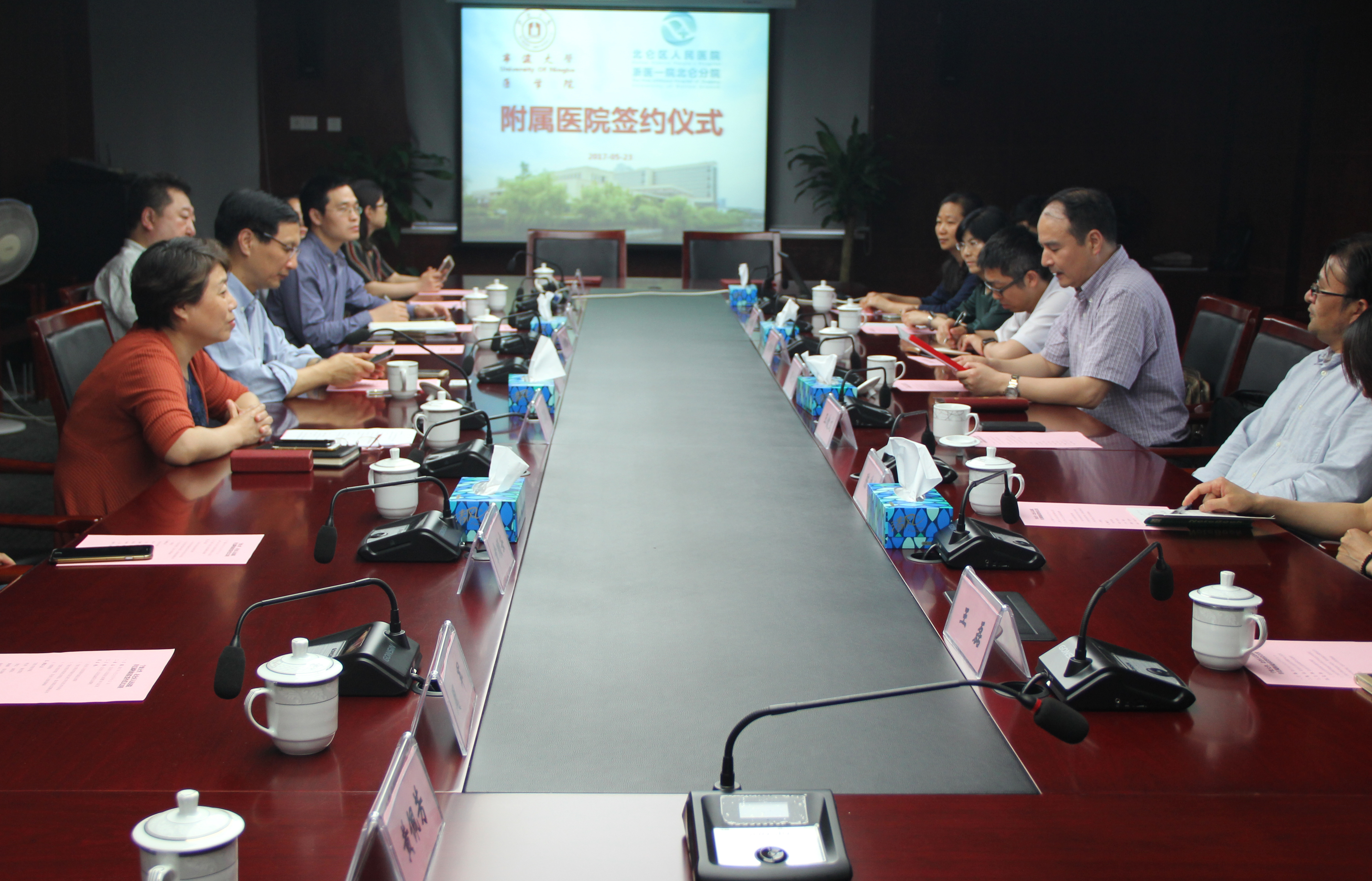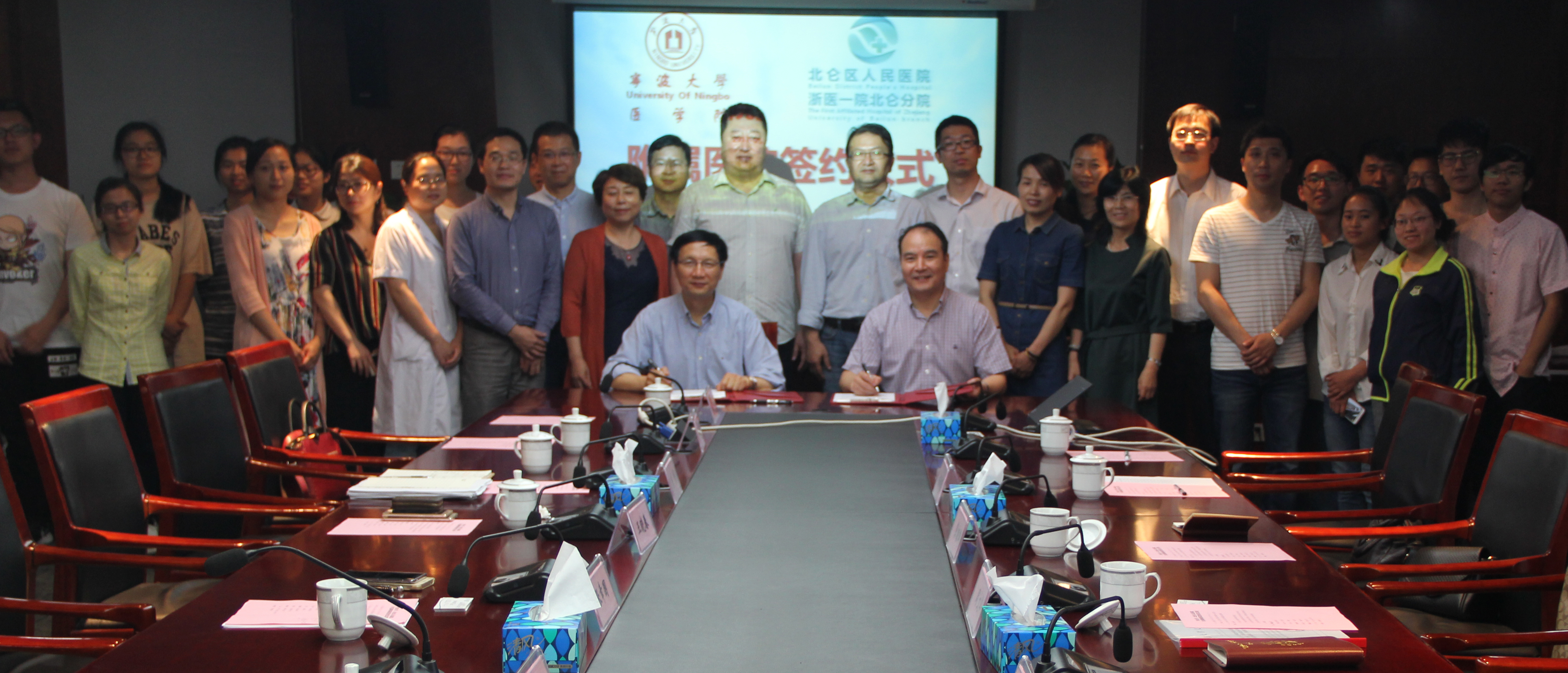 仪式后,举行了临床教学工作座谈会。双方围绕小班化教学、科研合作、研究生教育等事宜进行了研讨,周文华院长一行还看望了在北仑区人民医院实习的学生。