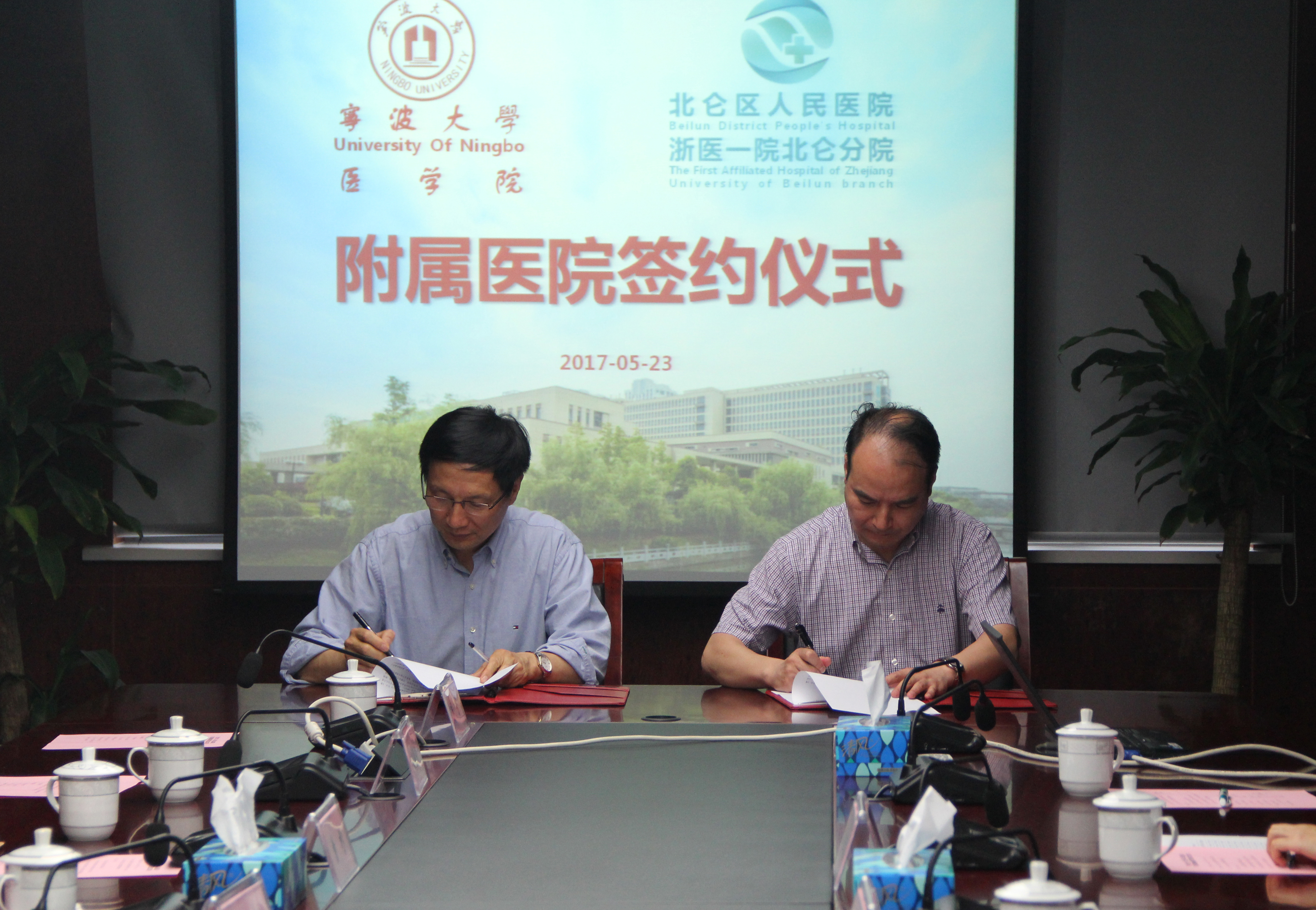 5月23日下午,Jinx漫画 与北仑区人民医院建立附属医院关系签约仪式在北仑区人 民医院举行。医学院执行院长周文华、北仑区人民医院院长张幸国代表双方签字。医学院和北仑区人民医院相关负责人、师生代表参加了仪式。