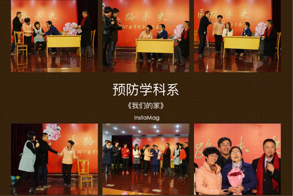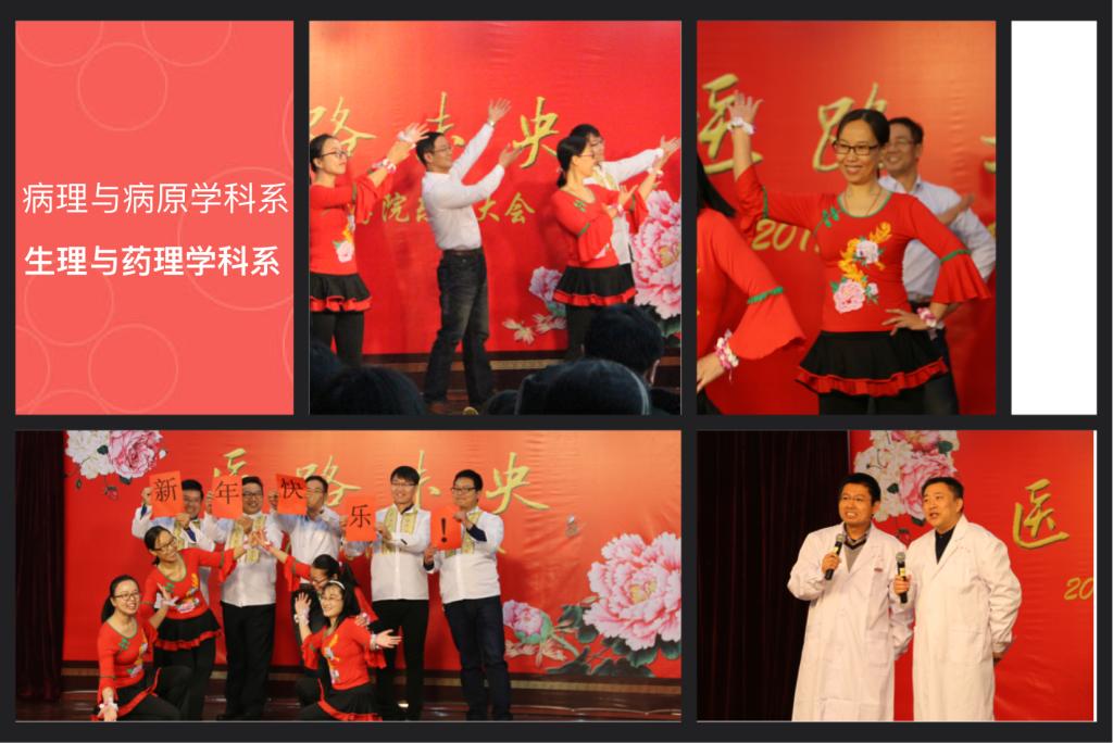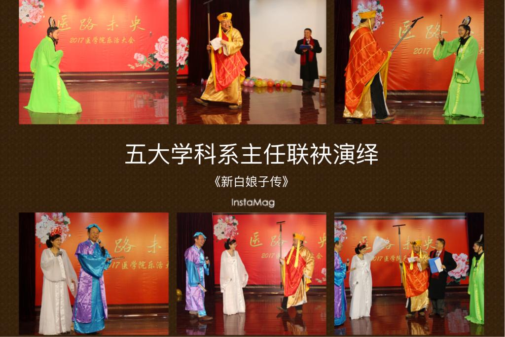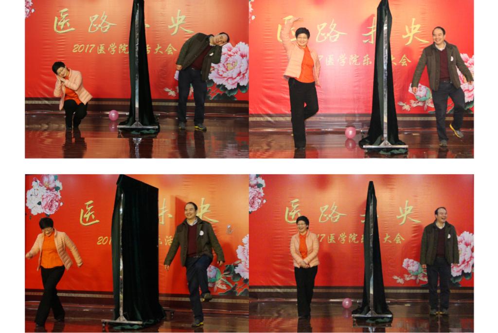 乐活大会以医学院分工会自制视频大片“医路未央”开场,以恢宏的气势,幽默诙谐的风格盘点了医学院的精彩而又忙碌的2016年,展示这一年“大家”的业绩、“小家”的变化,展现了全院师生在2016年抓住机遇,凝聚力量,在学院发展、校生命与健康学科群建设、医学中心建设、中港合作办学、中外合作建学科、岗位聘任、院党委和工会换届选举等各大事件中齐心协力、努力奋进的事件,同时又展现了全院教职工热爱生活,共建学院文化的风采,充满了浓浓的人文情怀。随后从院领导到各学科系、办公室各显神通,积极参与、展现才华为大家奉献出一个个高质量的欢乐大餐。全体院领导合演的小品《江南五大才子点如花》、各学科系主任合演的小品《爆笑新白娘子传奇》都是作品原创、笑料十足,院领导们和教授们以搞研究的态度搞笑,大大展示了幽默诙谐风采。各学科系展示的节目从舞蹈《真的没骗你》、《梦回汉唐》的华丽优美,到健身舞《向快乐出发》、《奔放的脚步》的活力四射,到语言类节目《我们的家》、《走在二胎的大道上》的欢乐风趣;加上摩登的学院新人秀,等无不结合了时下最流行的元素、最潮的语言和医学院的专业特色,聚集了大量教职工尽情地表演和参与,上下互动热烈,节目精彩纷呈,体现了医学院教职工劳逸结合、释放压力、凝心聚力、迎接挑战的精神风貌。此外,活动中还穿插了《我们都是木头人》、《神同步》等时尚而又有挑战的游戏,现场教职工参与热情高,现场一片欢声笑语,其乐融融。