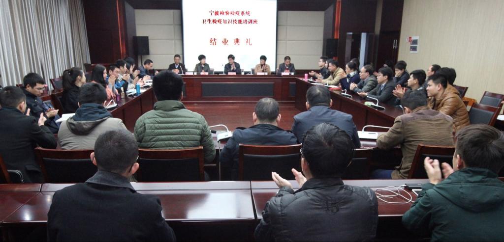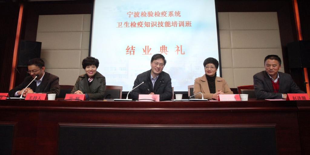 12月10日下午,“宁波检验检疫系统卫生检疫知识技能培训班”结业仪式在医学院王长来楼二楼多功能厅举行, 全班53名学员参加了仪式。仪式由宁波检验检疫局卫检处处长施惠祥主持,检验检疫局副局长周力沛、医学院党委书记骆巧凤出席并作了重要讲话,检验检疫局人事处副处长吴颖、医学院预防医学学科系主任赵进顺、学科系副主任张莉娜等出席仪式。
