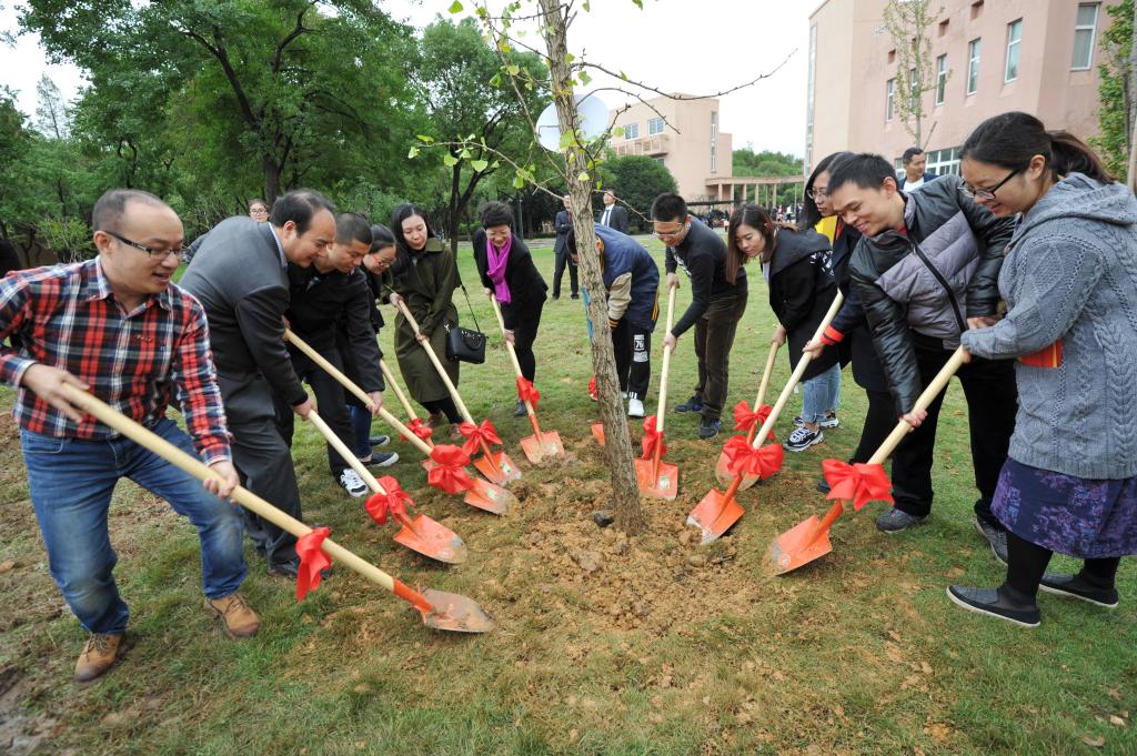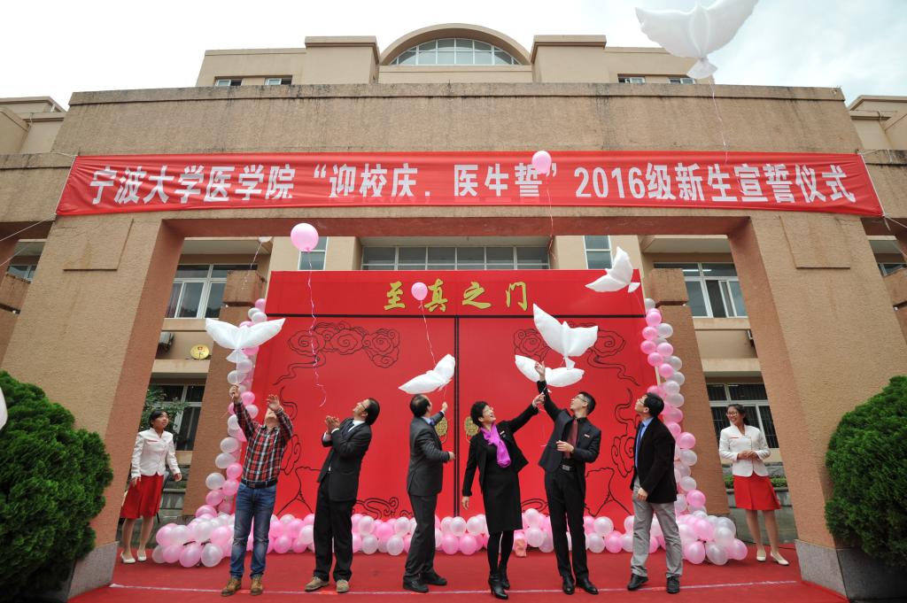 在细密的秋雨中,宣誓仪式开始了。寒风没有将医学生的热情赶走,当学生步入神圣医学学府的时刻,领导和嘉宾们授予新生代表白大褂,将光荣与沉甸甸的责任一并交给2016级医学生。2000级校友杭州邵逸夫医院祝成医师领誓,在场医学生们穿着白大褂,大声念出誓词,他们声音铿锵有力,表现了新一届医学生对于医学事业的热情和为其献身的坚定信念。愿所有人牢记誓言,竭尽全力除人类之病痛,助健康之完美,维护医术的圣洁和荣誉。慷慨激昂的誓词驱走了寒风,校友代表祝成和新生代表胡晓霞分享的白大褂情结温暖了所有人。祝成医师对同学们寄予了厚望,学生代表所诉说的青春和活力,正在他们的医学之路上慢慢散发出来。之后,新生代表与各位校友一同在秋风中放飞了代表医学生希望与梦想的白鸽气球,白鸽气球在秋风细雨中翻转飞舞,飞向天空,代表着医学生医学道路的坎坷与他们具备的顽强拼搏、为医疗卫生事业奋斗终身的精神。与此同时,医学院院歌悠扬的旋律响起,仰慕岐黄,至真同窗,师生一德,博学守仁——短短的院歌,唱出的是医学生的归属感,是“励志切磋共一堂”的豪情壮志,也是对自己的鞭策与期待。院歌齐唱完毕,执行院长周文华致词,对新生的学习、生活提出了几点要求,并向新生致以诚挚的祝愿。最后主持人邀请各位领导,校友与学生代表移步银杏庭,参加种植树苗活动,并合影留念。