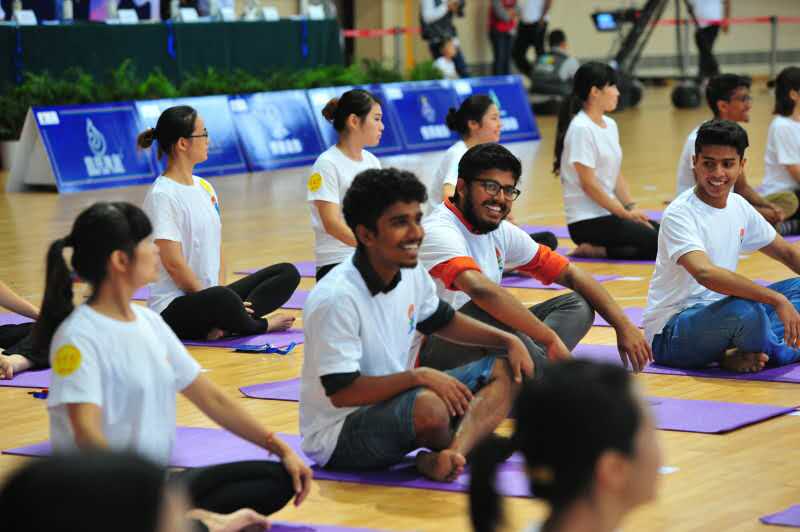 活动上,留学生们统一着装,欣赏了精彩纷呈的节目,如印度肚皮舞、旗语操、瑜伽表演等;现场印度驻中国瑜伽推广大使艾玛带领上百名瑜伽爱好者进行体验教学,学生作为特邀嘉宾纷纷踊跃参与其中,放松身心,乐趣横生,欢声笑语弥漫整个场馆。