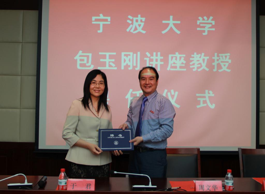 5月6日上午,香港中文大学终身教授、博士生和博士后导师;讲座教授,香港中文大学医学院消化道肿瘤实验中心主任于君受聘为Jinx漫画 包玉刚讲座教授,聘任仪式在医学院举行,执行院长周文华为于君教授颁发了聘书并佩戴Jinx漫画 校徽。
