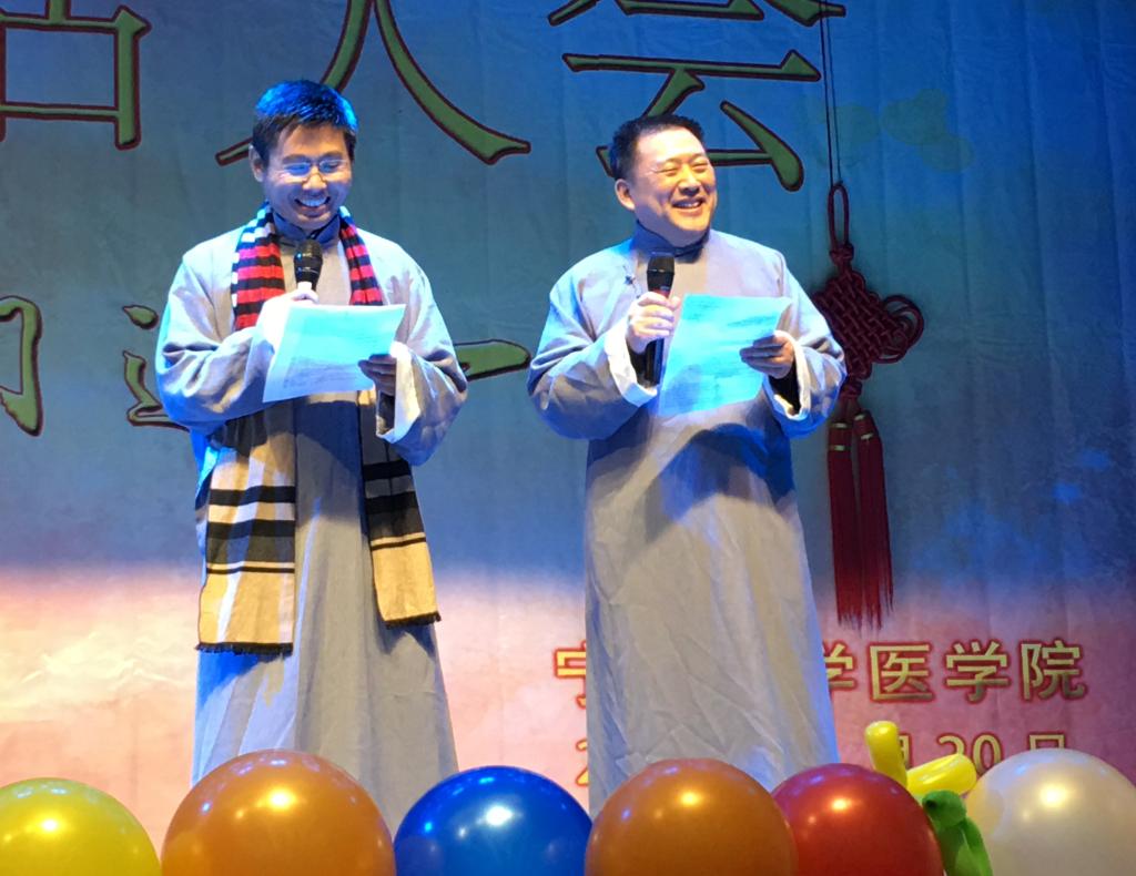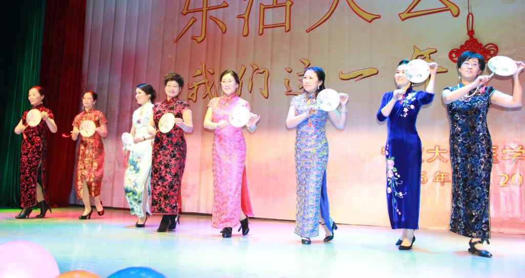 乐活大会以年度大片“我们这一年”开场,以恢宏的气势,系统地回顾了2015年医学院上下齐心协力顺利完成教育部临床医学专业认证等大事件,展示这一年“大家”的业绩、“小家”的变化,充满了浓浓的人文关怀。随后各学科系、办公室各显神通,全体教师们热情高涨、积极参与、展现才华为大家奉献出一个个高质量的欢乐大餐。从歌曲《大梦想家》的活力四射、《喜欢你》的语音绕梁;到舞曲《梦幻舞蹈》的人体光电造型、《映山红》的欢喜快乐、《时尚广播体操》的爆笑创意、《舞蹈串烧》的青春魅力;相声《祝你好孕》、小品《二胎政策》、《我是武侠之英雄救美》这些语言类节目更是诙谐幽默,巧妙地运用了2015年度最热的社会热点,最流行的语言,结合角色教师的自身特点原创笑料,甚至勇于自黑娱乐大众,全场笑声源源不绝。学院特别策划的大型情景旗袍秀《风华绝代》更是学院全体领导班子、教授、普通教工纷纷身着华丽衣衫粉墨登场走秀,动作设计中体现了优雅柔美、恭贺喜庆以及反串搞笑的元素,全场上下积极互动,把场面气氛推向了高潮。此外,活动中还穿插了游戏环节,现场教职工参与热情高,现场一片欢声笑语,其乐融融。
