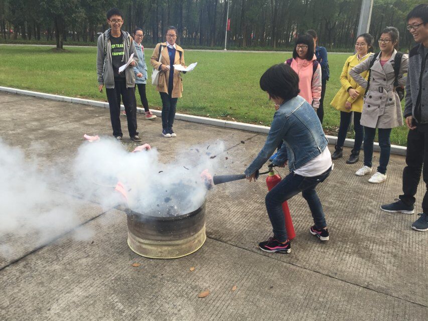 本次活动由观看消防知识视频环节、知识问答环节、CPR教学环节、知识比拼“天梯赛”环节及灭火器使用现场教环节组成。“灭火器现场教学”环节,由保卫处老师和学院学生工作负责老师监督完成,同学们从中学会了正确规范地使用干粉灭火器和二氧化碳灭火器。