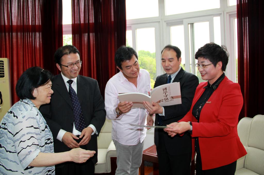 周文华院长向汤圣明先生一行介绍了医学院的办学历程和取得的成绩,向汤氏家人表达了医学院师生对汤于翰博士的殷殷感激之情和浓浓缅怀之意,并表示医学院将不辜负汤于翰博士“造福桑梓、富国强民”的宏愿,坚持“博学守仁”的院训,把医学院办成一座规模适中、高水平、国际化、有特色的地方综合性大学医学院。