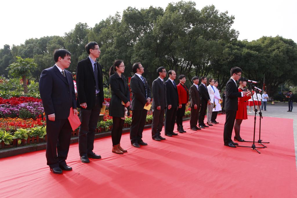 金秋的宁大,党代会圆满落幕,春华秋实结硕果;午后的校园,医学生青春集会,天朗气清迎盛典。11月19日中午,医学院“两誓对接·塑人塑心”医德医风教育活动之2014级医学生宣誓仪式在学校北大门隆重举行,学生发展与服务处、国际合作处、校团委相关领导,医学院全体党政领导、优秀校友、师生代表,以及医学院2014级全体中外新生、阳明学院2014级医学类全体新生共400余人参加了活动。