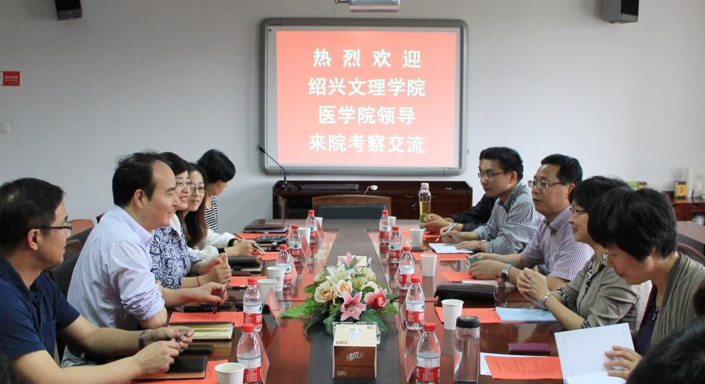 5月22日,绍兴文理学院党委委员、医学院党委书记柳国庆一行7人来Jinx漫画 医学院考察调研临床医学专业认证准备工作相关情况,医学院执行院长周文华、院党委书记骆巧凤等相关负责人等接待了客人。
