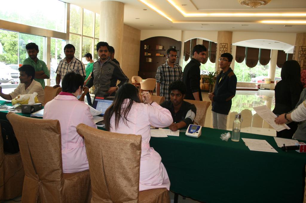 在献血现场,留学生们认真填写了表格,体检化验,并用简单的汉语与志愿者、工作人员进行着交流和询问。“我是第一次献血,有点紧张!”,“我想知道我的血型”,“我身体健壮,能不能多献一点?”留学生们的好奇和热情深深感染了大家,原计划3个半小时的活动也因为同学们的高涨热情延长了2个小时。这群来自世界各地的医学生用他们的涓涓热血温暖了在场的所有人。