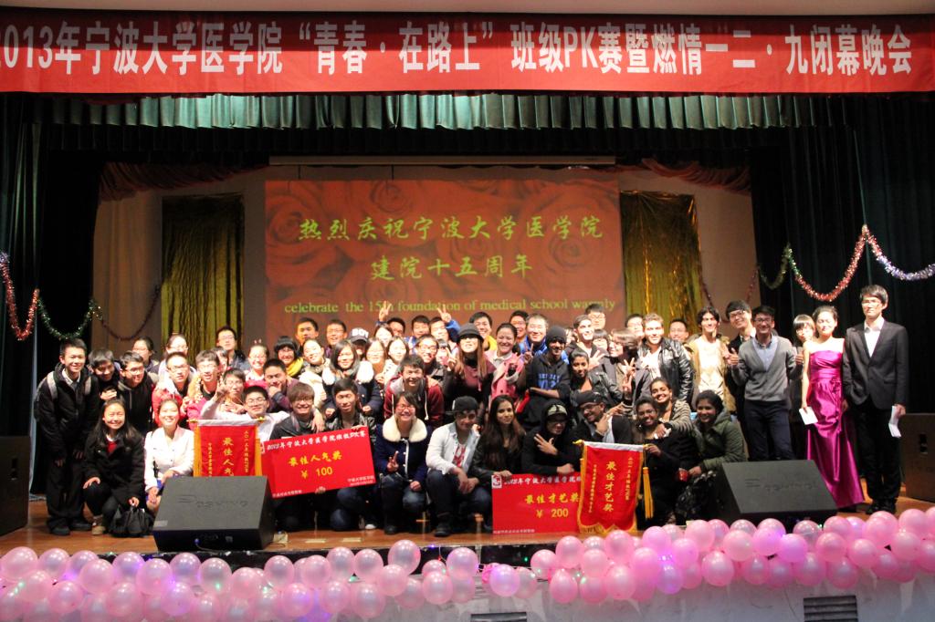 此次班级PK赛晚会以“青春·在路上”为主题,倡导同学们为青春,为班级,为梦想而努力。晚会开始,由SO SHOW舞社带来精彩朝气的《SO SHOW》开场舞,带动了全场师生的热情,同时展现了我们这一代青年人的激情。其中,由临床124班带来自编自导自演的音乐剧《宁大爱情》,草根文化展现得淋漓尽致,又以轻松的气氛表现了美好的宁大校园爱情。临床135班跳动的《Feel the 爱》更是High翻全场,动感的舞蹈彰显了我们这个时代的活力。晚会上让人夺目的是,医学院竺亚斌教授的女儿,在火热的现场表演了清新脱俗的舞蹈《荷塘月色》。杏林话剧社带来的话剧《Ta》,感人之至,让我们回到原点,感受家的温馨。最值得一说的是,由留学生带来的,含有浓郁民族元素的舞蹈《dance》和《hip hop dance》,火热奔放,带动台下观众一起挥手鼓掌,一起high全场!最后,由临床135带来的《Feel The 爱》获得了此次晚会的最佳人气奖。由留学生带来的《dance》受到评委的一致青睐,获得此次晚会的最佳才艺奖。