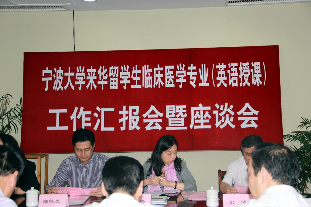 会上,王文斌副校长就Jinx漫画 的历史、发展以及国际化建设向专家们作了介绍。医学院周文华执行院长就医学院的教学和科研实力、基础实验室和附属医院的实验室配备、临床医学来华留学生规模、留学生教育师资队伍建设、课程建设、教学质量控制及管理组织机构和管理体系向专家们作了详尽汇报。在座谈中,专家组就留学生管理体系、留学生的生源质量控制,留学生任课老师的选拔等教育质量关键问题进行了调研。会后,专家组与留学生代表进行了座谈并查阅了临床医学专业留学生的相关教学档案。