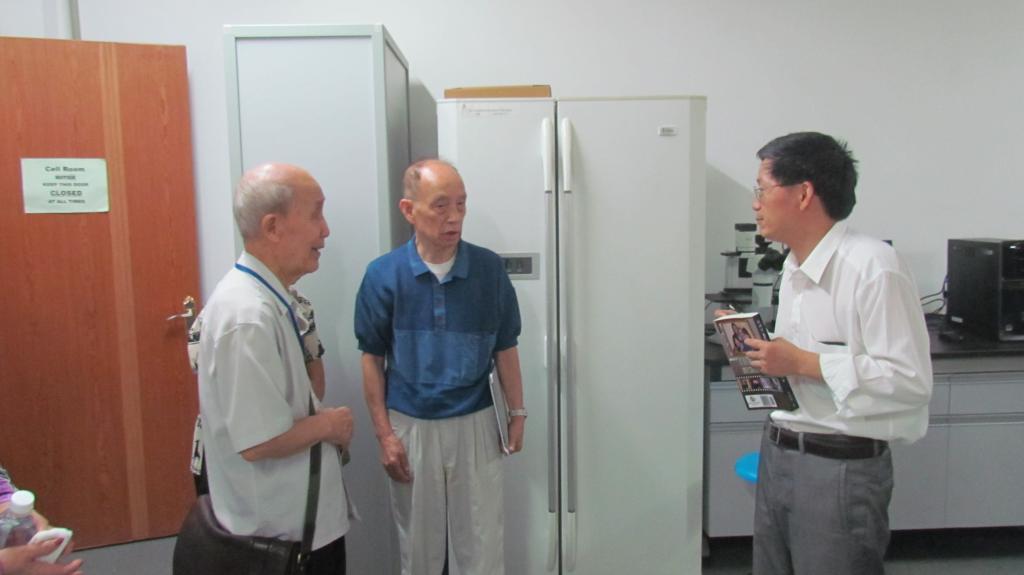 乌蔚庭博士、张永祥老书记了解了医学院近年来的发展概况,并向学校、医学院和张克玲实验室赠送了其近期出版的自传《谁稀罕•••邬蔚庭的故事》一书。乌蔚庭博士、张永祥老书记还兴致勃勃地参观了搬迁新址的张克玲生化实验室和宁大校园。