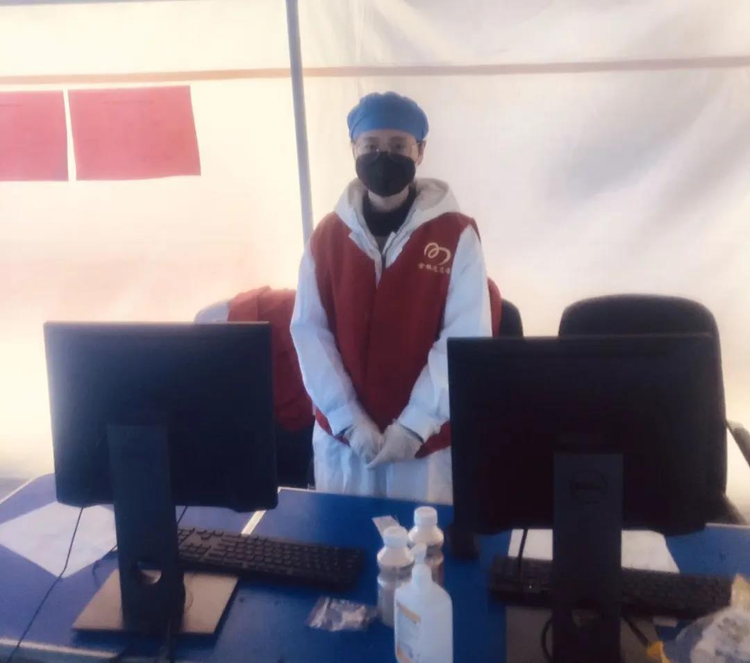 朱林芬同学:当时我偶然在公众号上看见了招募防疫志愿者的信息,其中有一条招募要求是优先为具备医疗防护、心理疏导等相关专业知识的志愿者安排岗位,我是预防医学专业的,比较了解防疫工作,感觉义不容辞,就报名参加了。