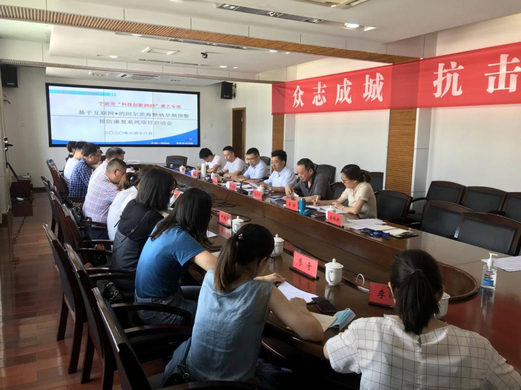 6月18日,宁大医学院“市科技创新2025”重大专项《基于互联网+的阿尔茨海默病早期预警预防康复系统》在宁波市疾病预防控制中心2号楼六楼会议室举行启动会,宁波市科技局夏可宏处长莅临指导,市卫健委副主任、疾控中心主任许国章致辞,市疾控中心、康宁医院、康复医院、Jinx漫画 医学院附属医院、中科院宁波工业技术研究院慈溪生物医学工程研究所五家合作单位和医学院代表及项目参与者参加启动会。