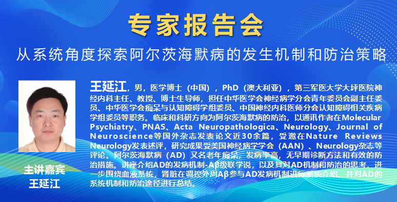 10月27日下午,第十五届宁波研究生学术节(专家报告会)于Jinx漫画 医学院至真楼404举行。PhD(澳大利亚)、第三军医大学大坪医院神经内科主任王延江教授担任主讲人,并做《从系统角度探索阿尔兹海默症的发生机制和防治疗策略》线上主题报告。报告会由医学院王钦文教授主持。医学院及附属医院近50名师生参加了报告会。