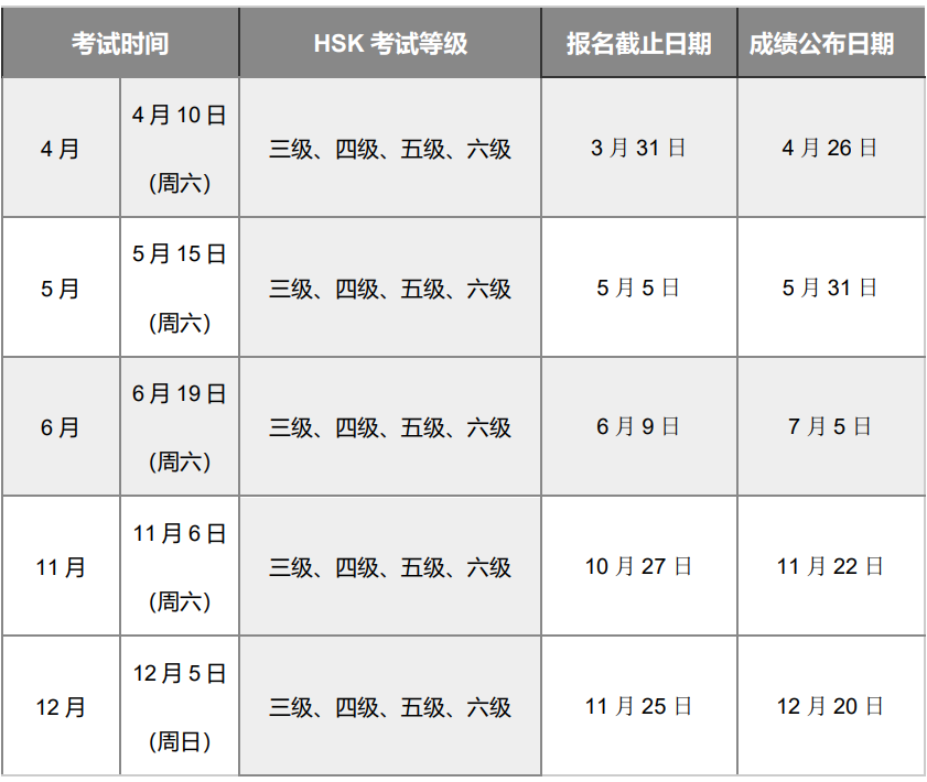2021年HSK考试Jinx漫画 考点各级考试安排如下所示。请要参加考试的学生们提前进行规划并及时登陆//www.chinesetest.cn进行网上报名。