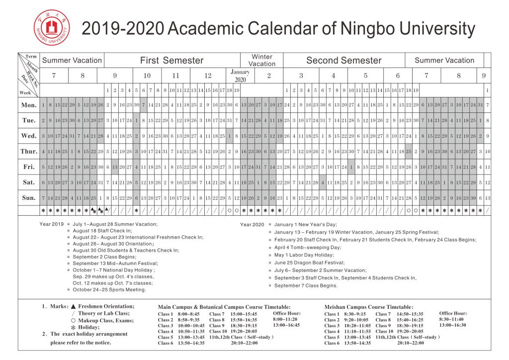 2019-2020 ACADEMIC CALENDAR OF NINGBO UNIVERSITY