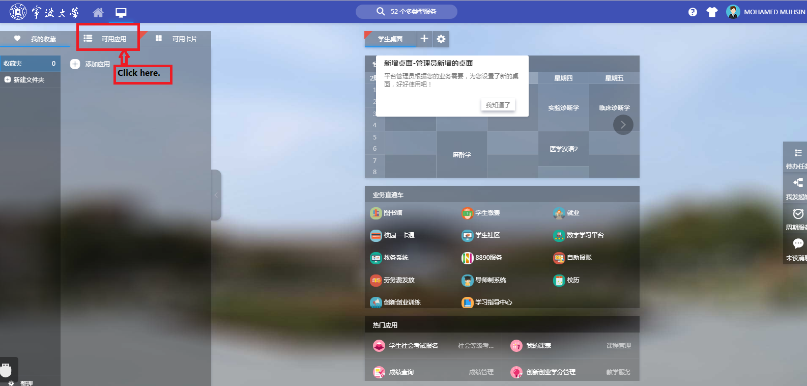 Step3. Click “可用应用”(Available Application)as indicated in red retangle.