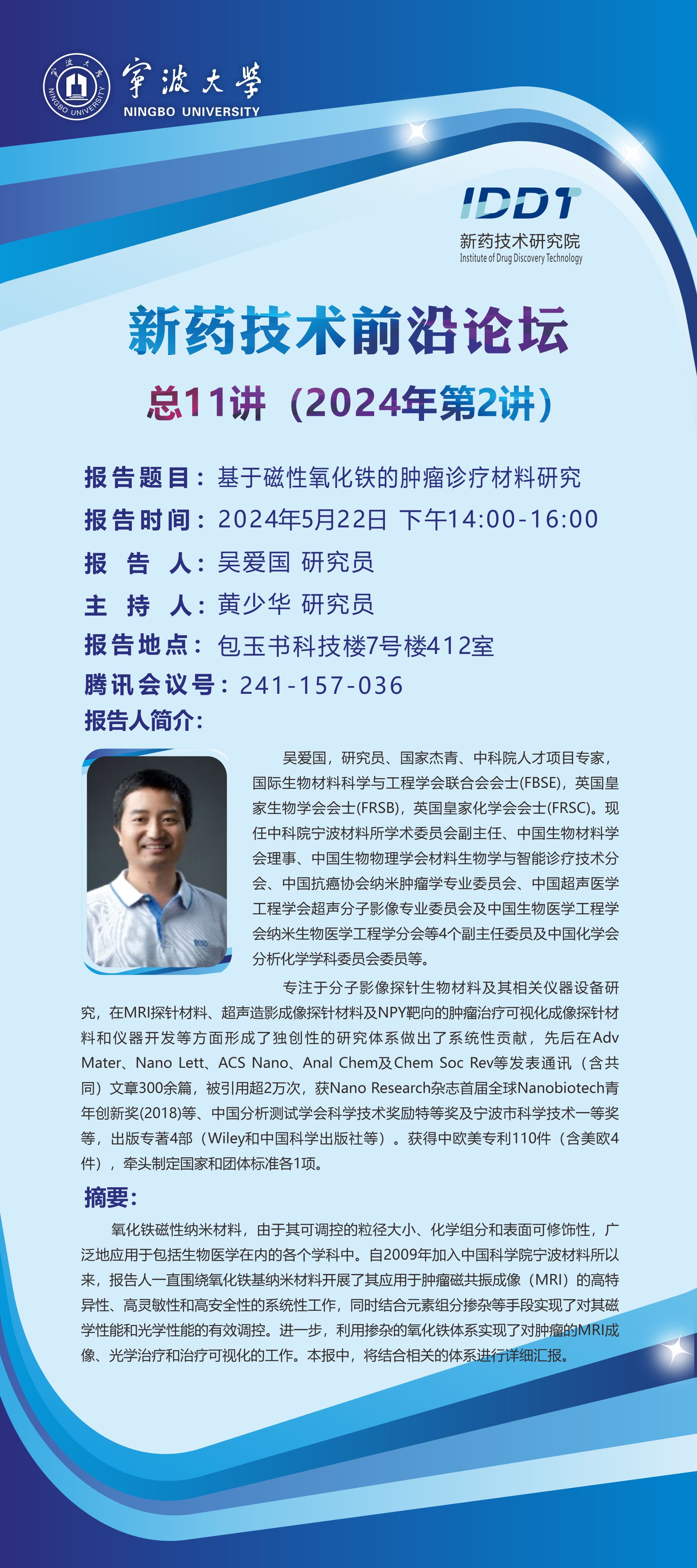 转发“新药技术与生命健康”大讲堂(2024年第2讲)