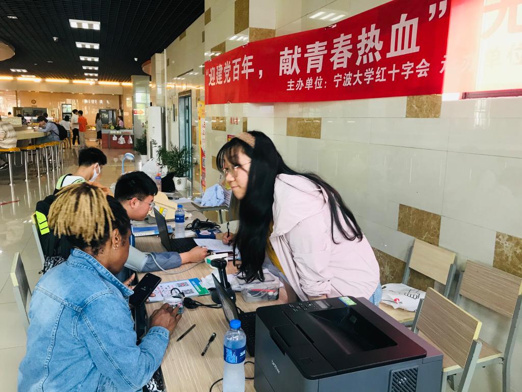 On the morning of May 7, the Red Cross Society of Ningbo University, the Youth League Committee of School of Medicine, the Student union of the School of Medicine , the Jiangbei District Blood Donation Office jointly organized the blood donation activity. The event was successfully carried out on the first floor of Yongjiang restaurant, with more than 30 blood donors participating in the activity,including Chinese students and foreign students from different faculties.