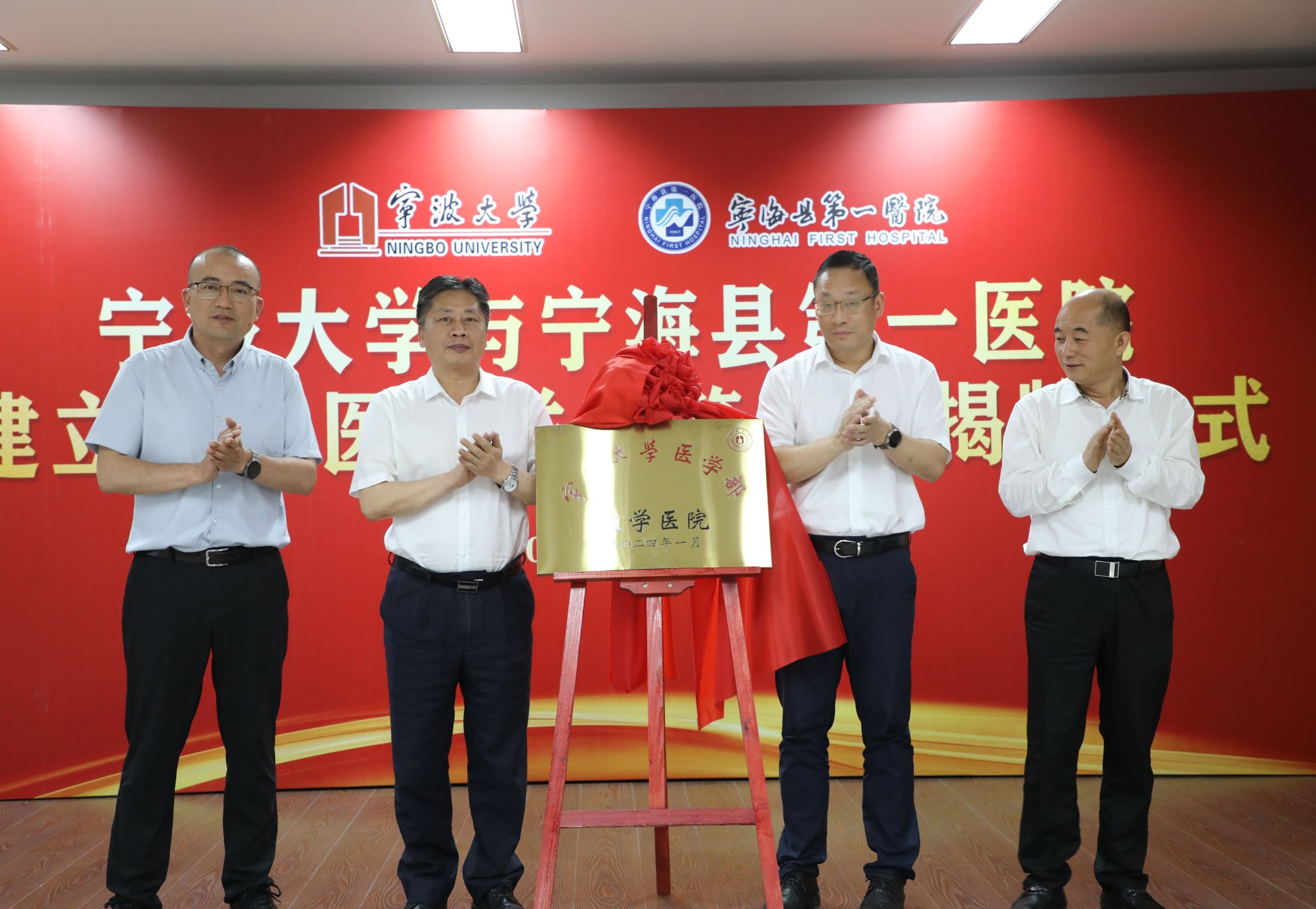 Zhang Zhenzhu spoke at the establishment ceremonies of both teaching bases. He first introduced the achievements and talent cultivation status of the university and the Health Science Center and expressed gratitude to the governments of Haishu District and Ninghai County for their care and support for Ningbo University. He set forth three expectations for school-locality cooperation: seize opportunities and act proactively, utilizing the teaching base platforms to continuously improve the quality of medical talent cultivation and fully leverage its own advantages to support and help the teaching bases enhance their teaching, research, and discipline construction levels; build together and share to achieve improvement, with hospitals deepening connotation construction and quality enhancement, realizing new leapfrog development; and school-locality cooperation for common development.