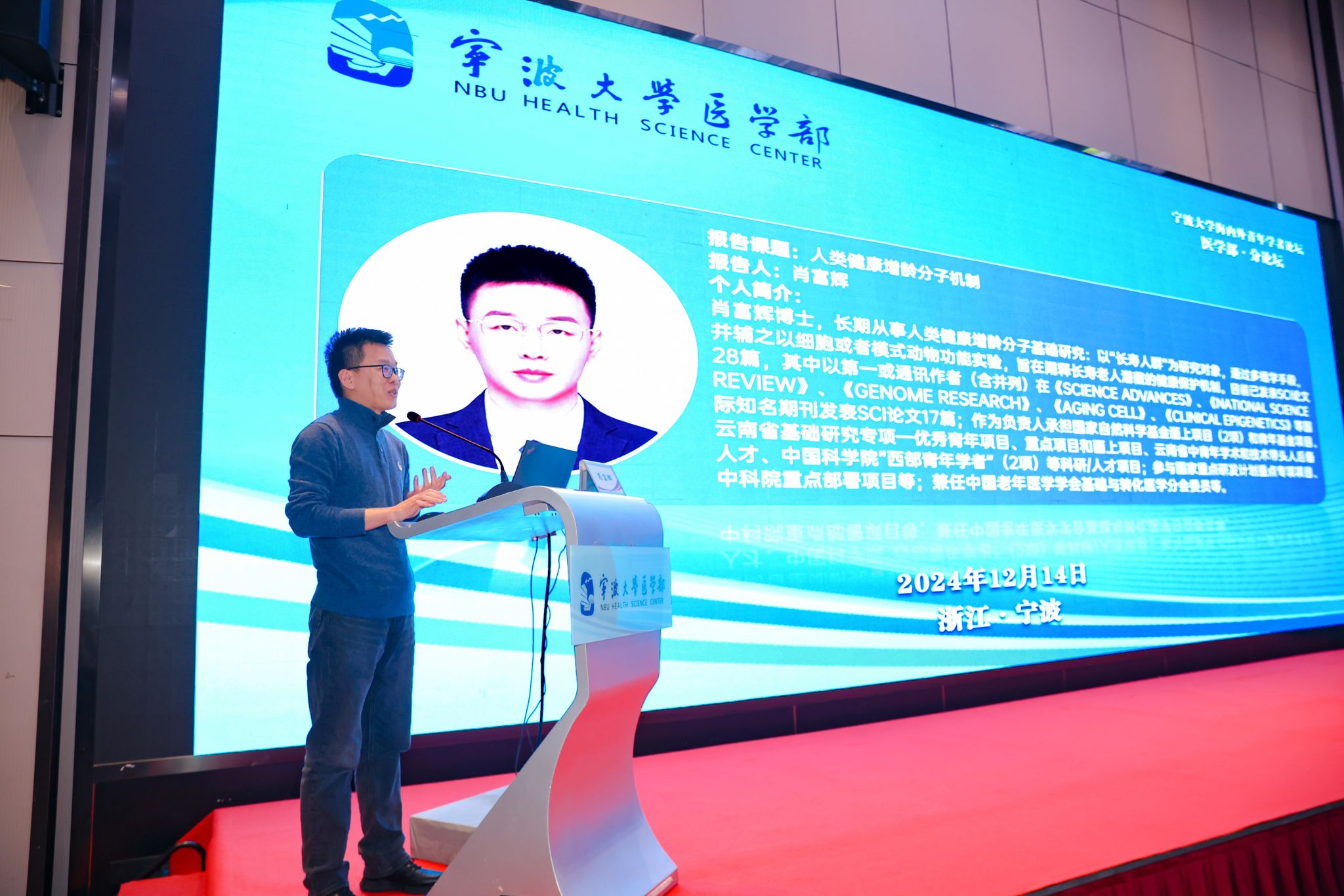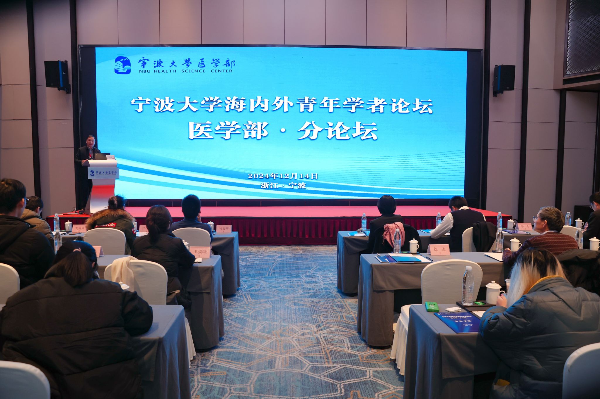 On December 14th, the Ningbo University Health Science Center successfully hosted the medical section of the Ningbo University Forum for Young Scholars at Home and Abroad. The forum gathered young scholars from countries and regions including China, the United States, the United Kingdom, and Hong Kong (China), along with relevant officials from the University's Party Committee Talent Office, the Science and Technology Department, leadership members of the Health Science Center, representative professors, and principal leaders of affiliated hospitals. More than seventy teachers, scholars, doctors, and graduate students participated in the event. The aim of this forum was to publicize the talent introduction strategy for high-level professionals of the Ningbo University Health Science Center and to explore the latest research advancements in the field of medicine. The forum was presideded over by Xu Jin, Deputy Director of the Health Science Center.
