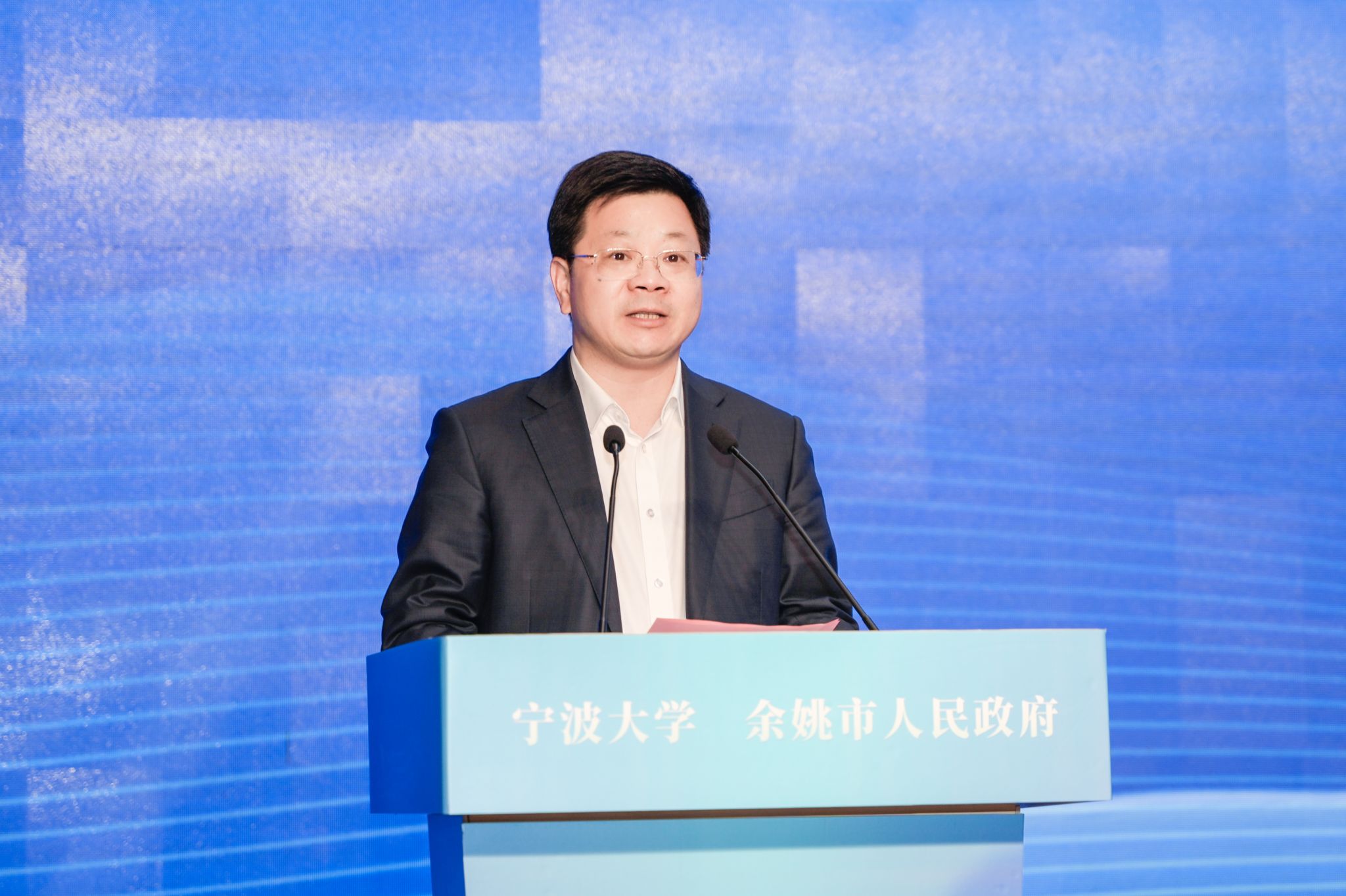 Vao Yongt, Deputy Secretary of the Yuyao Municipal Committee and Mayor, delivered a speech. He first expressed gratitude for Ningbo University's support for the economic, social, and health services in Yuyao City. He pointed out that the joint construction of Ningbo University's directly affiliated Yangming Hospital by Ningbo University and the People's Government of Yuyao City is an important measure to implement the General Secretary's instructions on health work, which will further promote the development of medical disciplines and break through bottlenecks in scientific research and innovation in the county area, and will push Yuyao's health and wellness cause into the fast lane of high-quality development. He hoped that with the joint construction as an opportunity and a new starting point, both sides could leverage their respective strengths to drive scientific research innovation, discipline construction, and talent cultivation in the hospital, and achieve the goal of establishing a third-level A-class comprehensive hospital as soon as possible. He stated that the Yuyao Municipal Committee and Municipal Government would implement and refine various agreed contents, strive to create better conditions and a better environment for the cooperation in medical management, and fully develop the cooperation between both sides into a benchmark model for universities empowering local development, benefiting the people of the region.