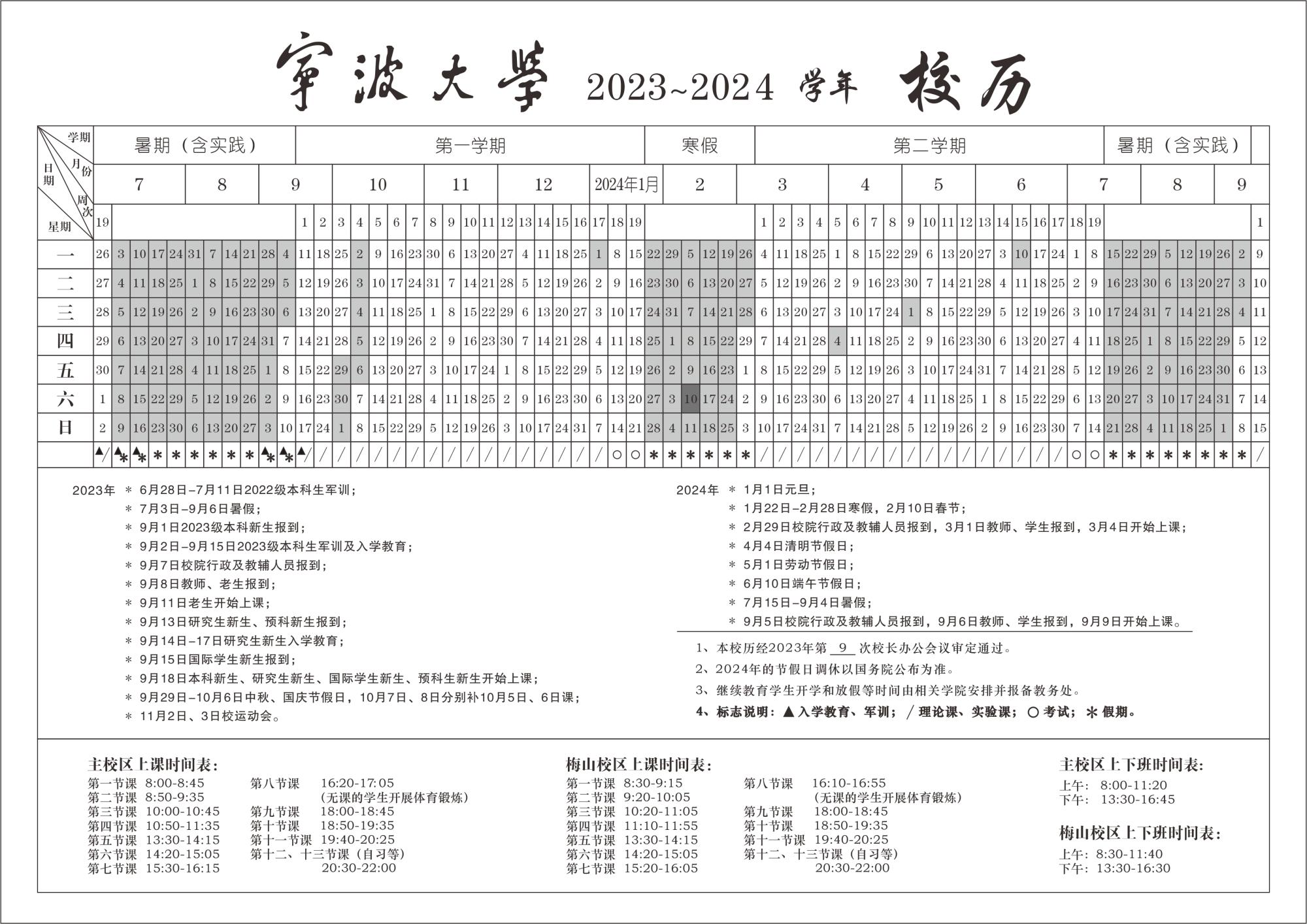 Ningbo University 2023-2024 Academic Calendar